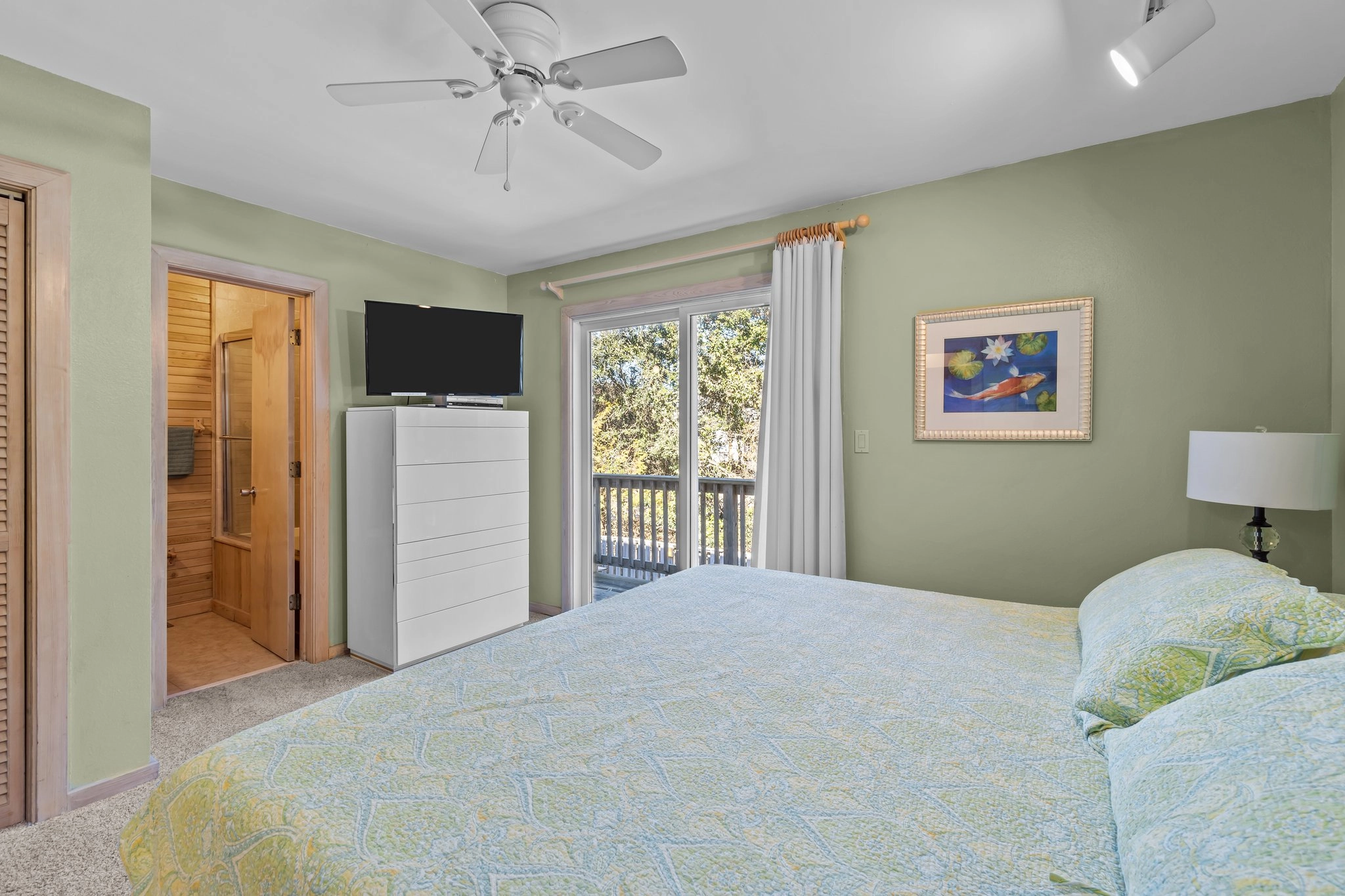 King, Shower/tub combo, Deck access
