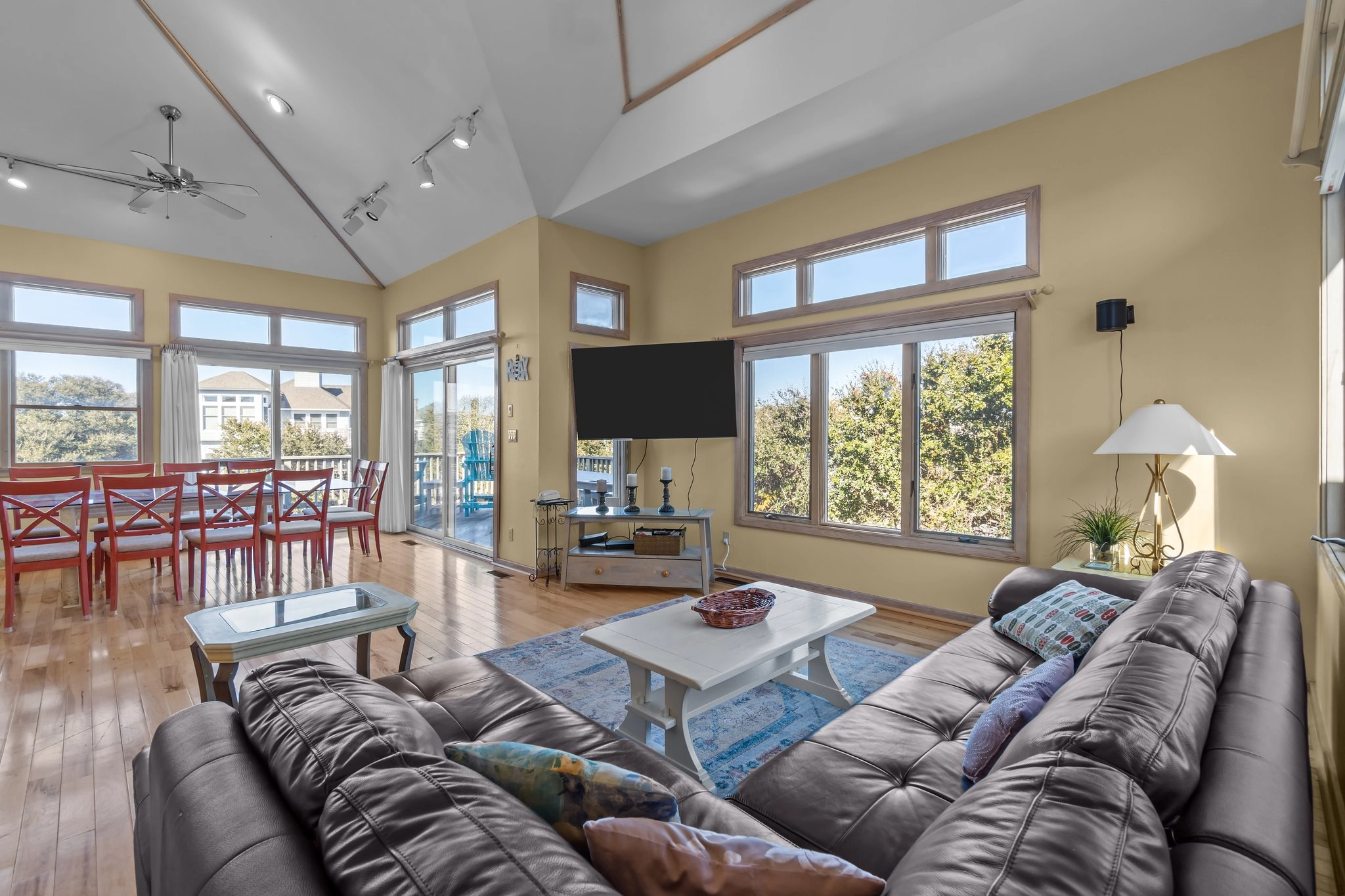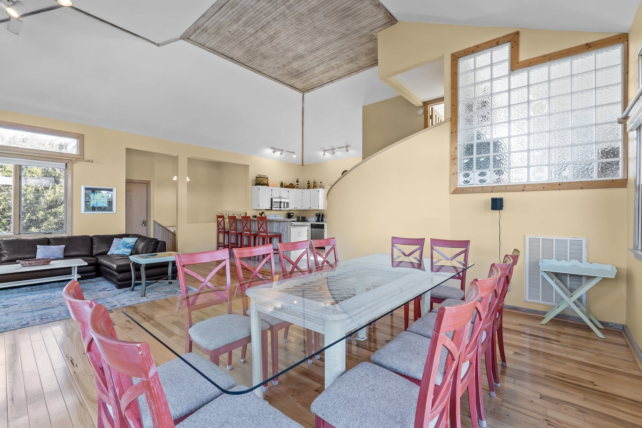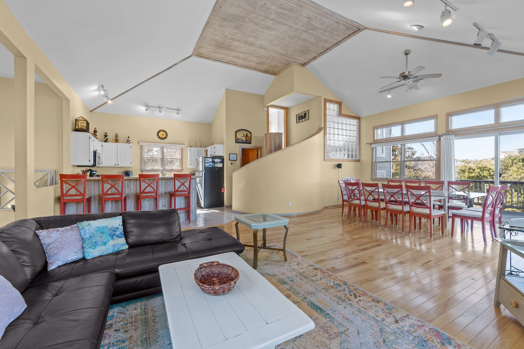 "close to the beach, close to town, and open concept gathering space- lovely!"