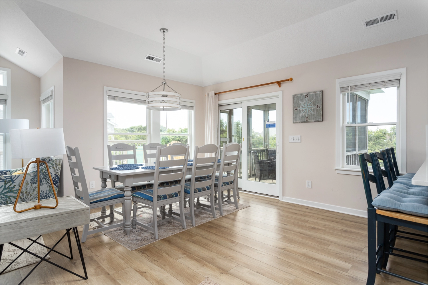"We have stayed at this home for nine years and have book it again for next year. The home has new upgrades - like wooden floors, outside kitchen, updated appliances, new countertops and a porch fan. The surroundings are relaxing and comfortable. The amenities in the community add to the relaxation. There is a community center with pools (inside and outside), exercise equipment and a beach pool with and observation platform where listing to the surf can be so relaxing."