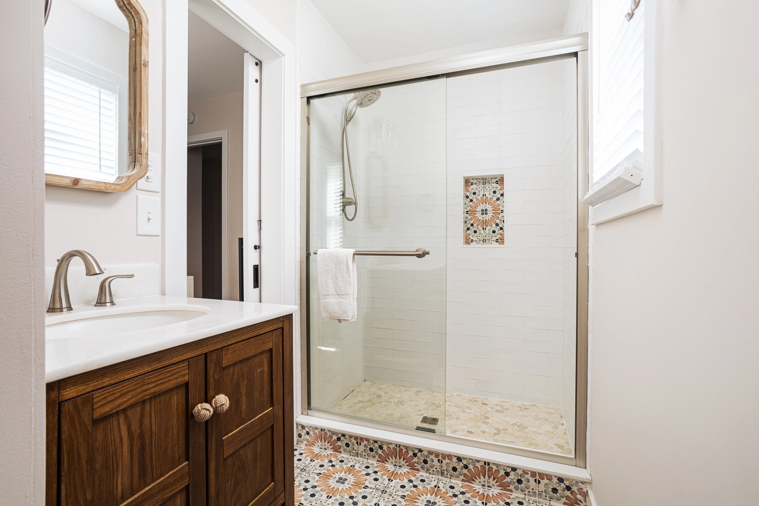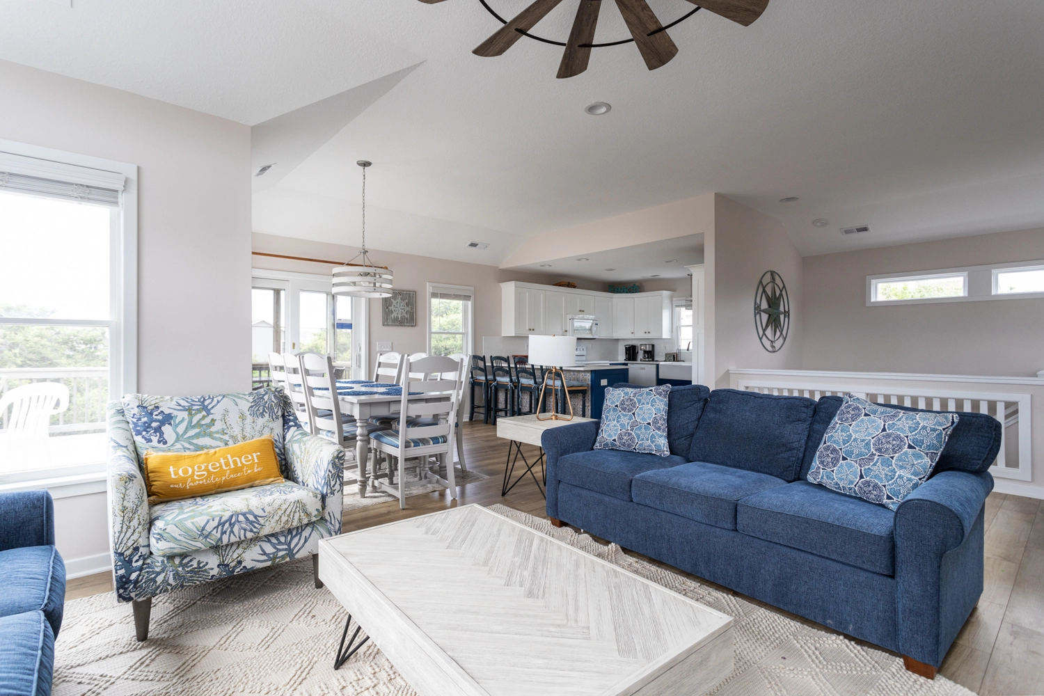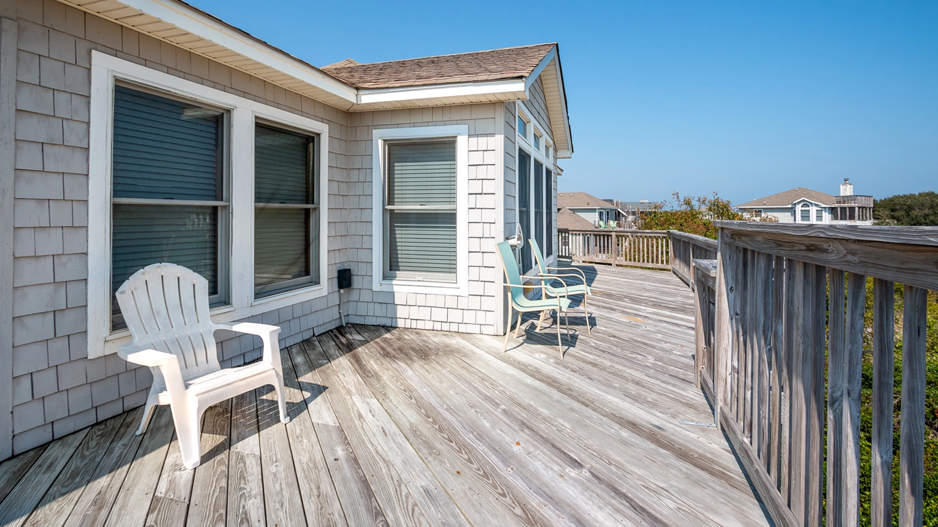 "Our 3rd time vacationing in Duck, 2nd with Twiddy. This house was in a good spot, and has a lot of potential. The walk to the beach is easy, and the amenities at Schooner Ridge were nice, even though we did not use any (except beach access). There were a lot of small things that need to be fixed (screen door, small cracks in walls, drywall damage, broken vinyl blind), the furniture was well used, but clean, the refrigerator&freezer are hanging on, but I wouldn't recommend trying to keep any icecream in the freezer. I did see that there were some 2022 Kitchen renovation plans in the guest book, so those issues I'm sure will be taken care of. Basically nothing that would stop you from having a great time in Outer Banks. The pool & hot tub area was well kept and having 2 outdoor showers was perfect for after the beach, and the storage area with the beach chairs to use was very nice. Everyone had a great time enjoying the great weather and location"