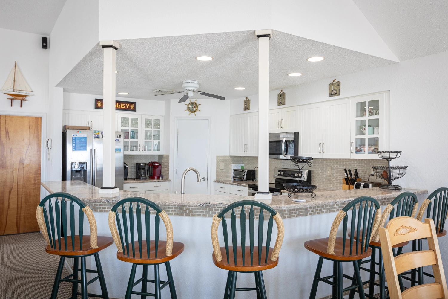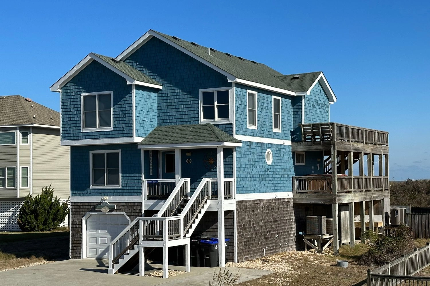"Great location and loved the home with all the bedrooms and bonus bedroom in the basement. Nice to have two refrigerators. Kept all our cold beverages downstairs. Also loved the ice makers, except the one in the kitchen didn’t seem to be working great. All the amenities in the kitchen and throughout were great. House was clean and ready for our stay. The only negative was that the beach access was a little rough getting down and up to the beach. Might recommend some kind of mat or stairs in the future. Kind of caught us off guard as we’ve always had stairs. Should probably have this in description so anyone with mobility issues would know."