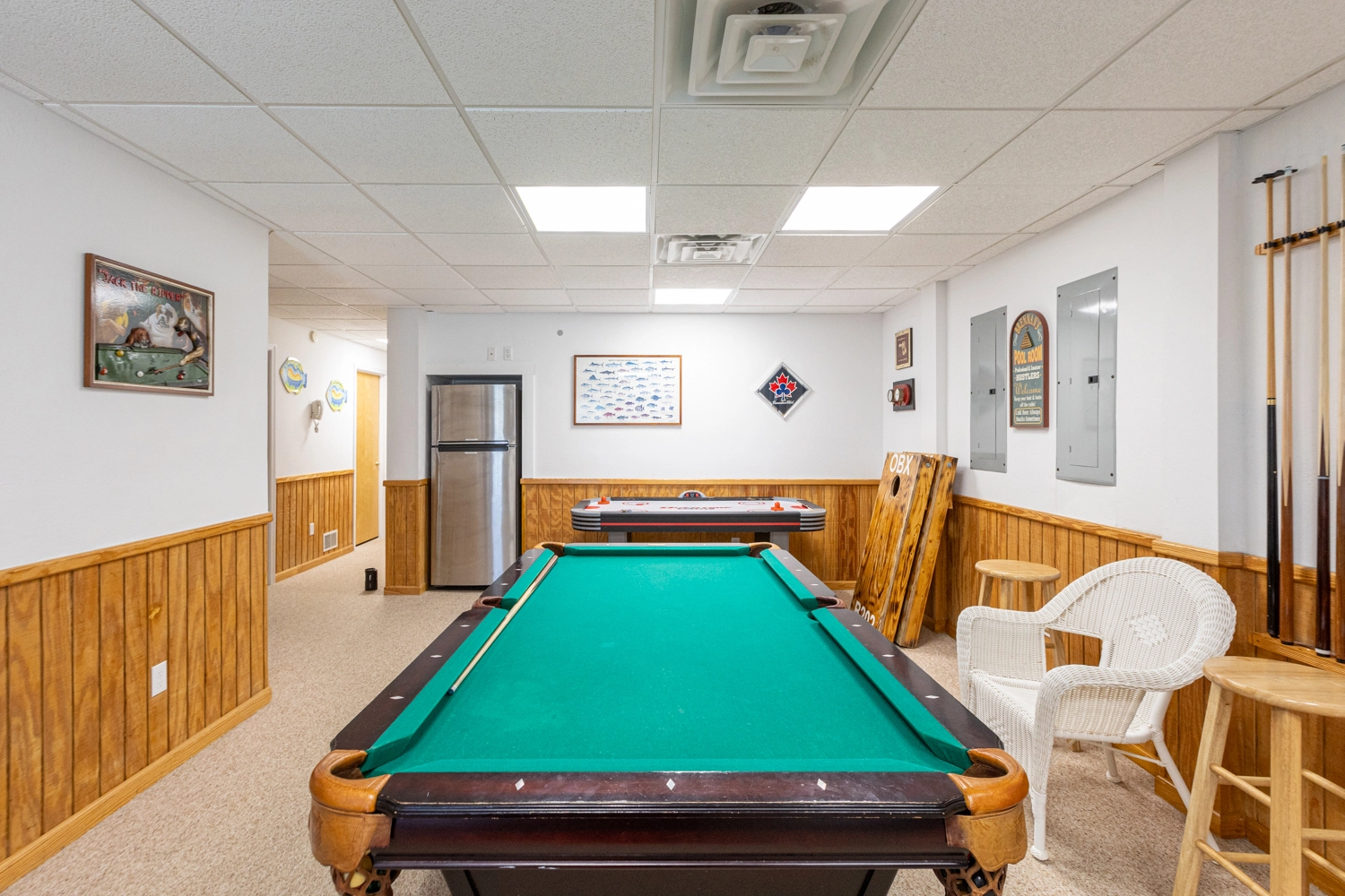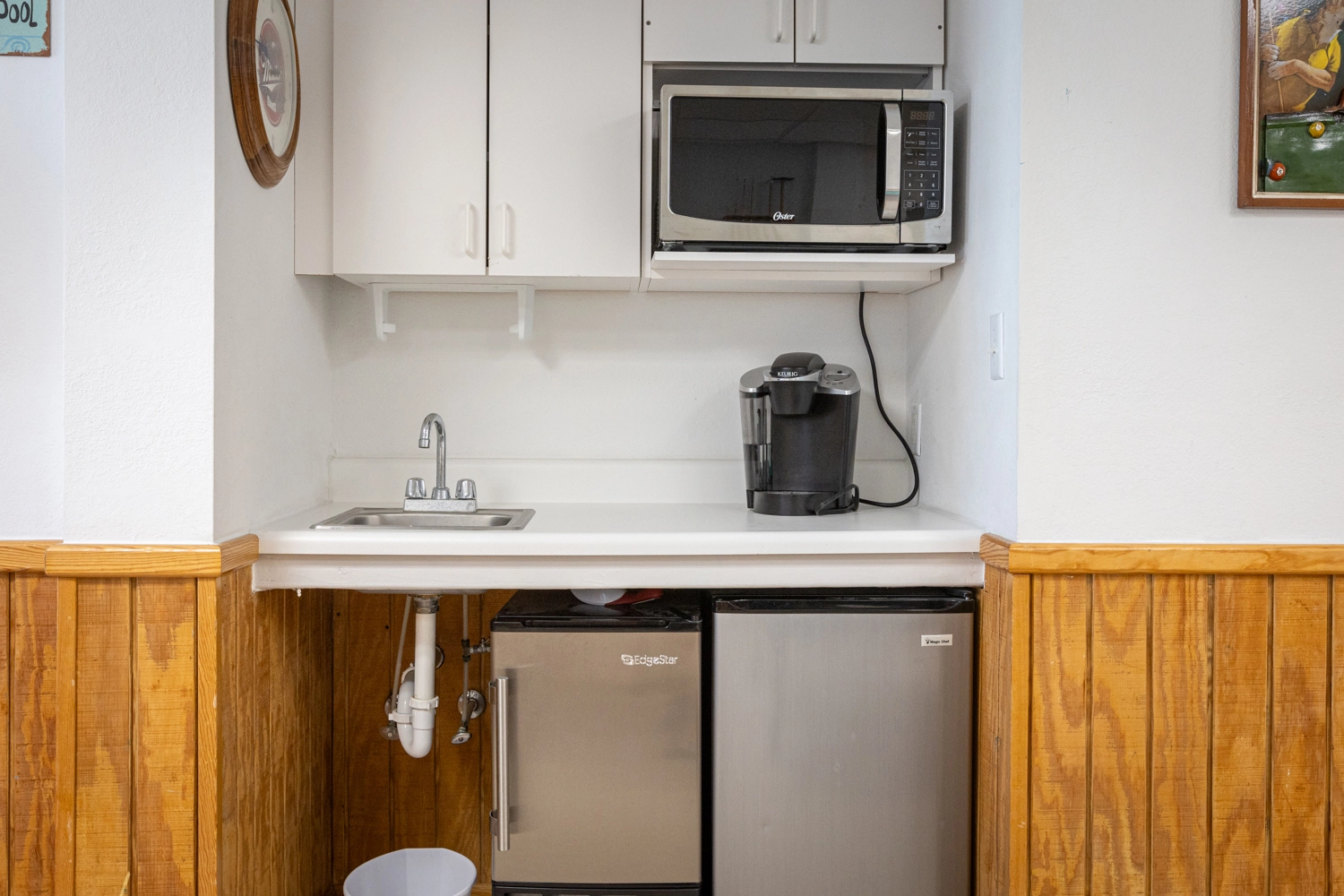 Den (K); rec room with 75" TV, electronic game system with 300 games, wet bar, Keurig coffee maker, refrigerator and microwave.