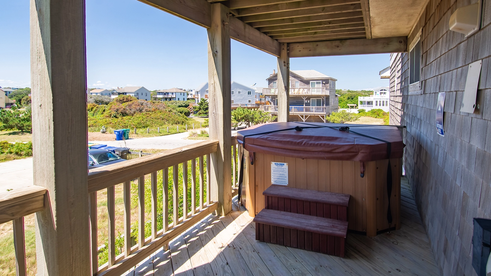 Laundry; decks; hot tub.