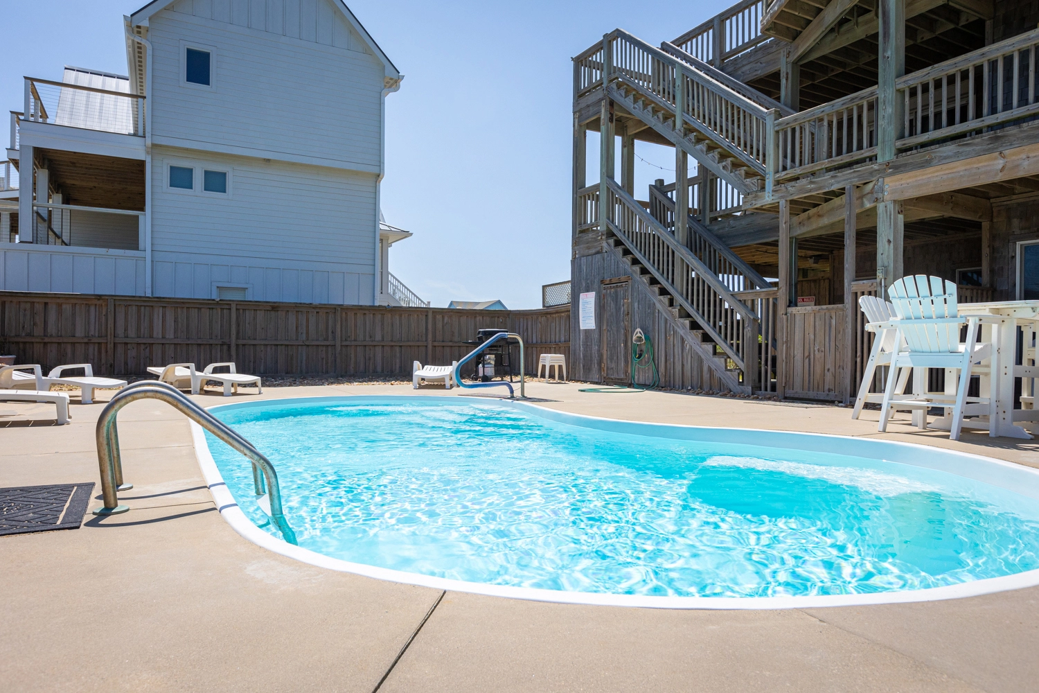 "We were 10 extended family members, including kids aged 3-6. We almost overlooked this property because of the weather-beaten outside siding, but this house does not disappoint! The interior is fresh and very modern, open, well-maintained, well-equipped, well-configured, and had more features than we could meaningfully use in one week -- e.g., billiards, pin ball, air hockey, foozball, treadmill, 2 ice machines, and a hot tub. Great kitchen appliances. I'm a big guy and often feel cramped for a week in a queen; not here---all kingsize beds. No spiderwebs or insects -- like we've seen elsewhere. No protruding nails--all flat-head screws. Private pool and beachfront were ideal during COVID. This was our first Twiddy rental -- someone (owner, Twiddy, ?) pays attention to the details! Even the many light switches were labeled. We already re-booked this property for next year. Buckeye from Ohio"