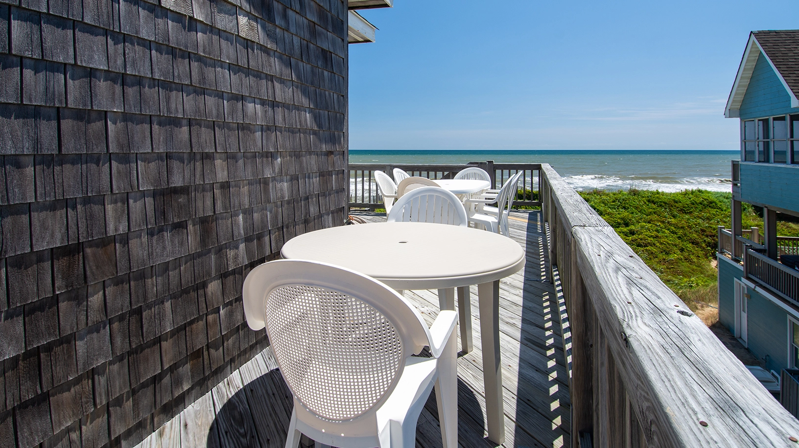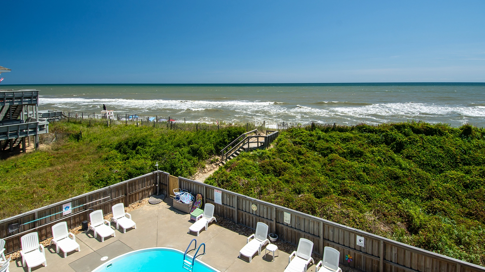 "It’s a beautifully equipped home and great location, close to Duck town center. Kitchen is fully stocked with everything you could ever need for utensils, servingware and appliances. There are lots of place to spread out and the best view ever from the ample decking. Love the extra sleeping area next to the game room. Pool is a perfect spot to socialize with your group after a day on the beach. The beach is very active and lively. Highly recommend this home."
