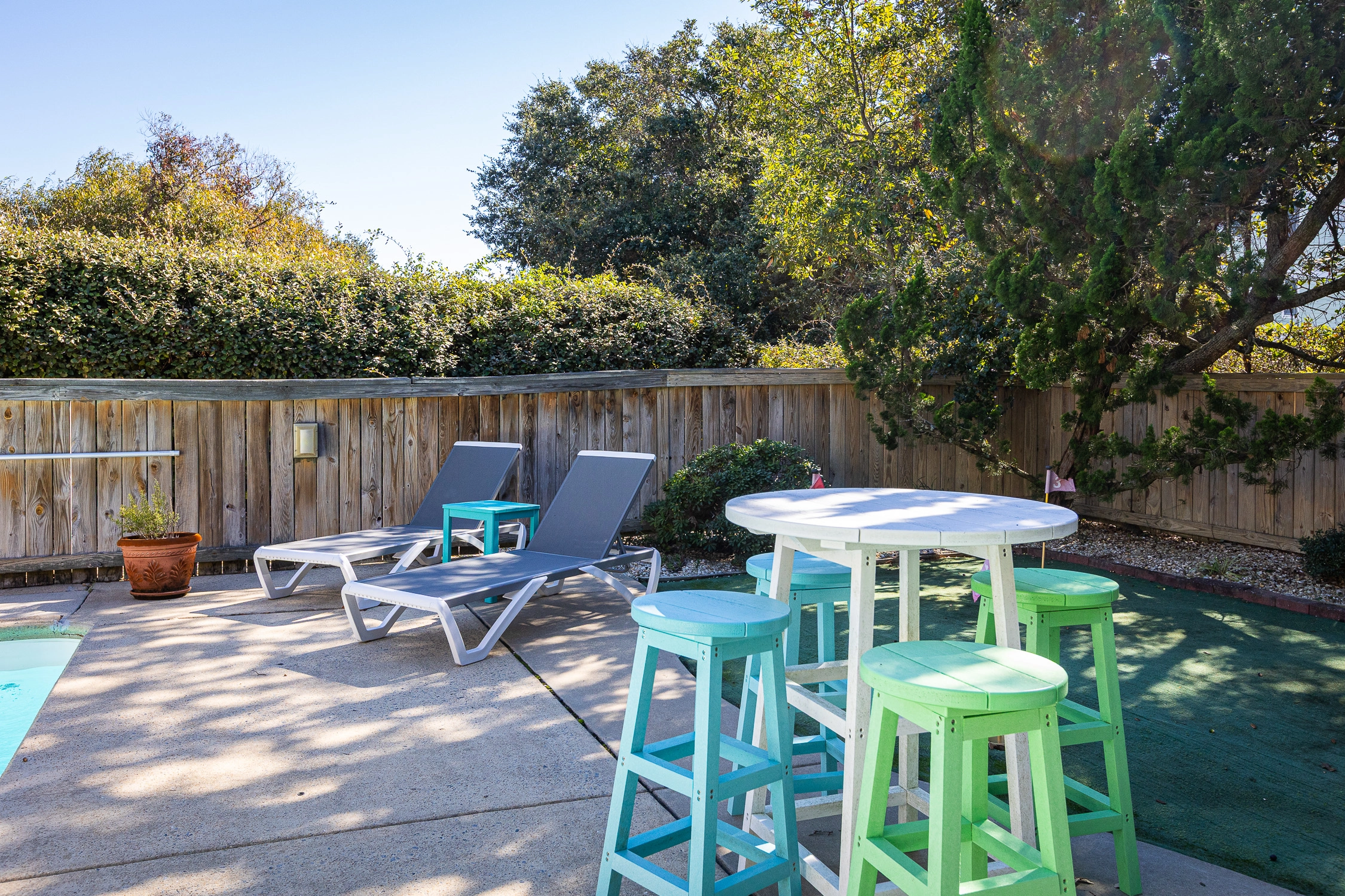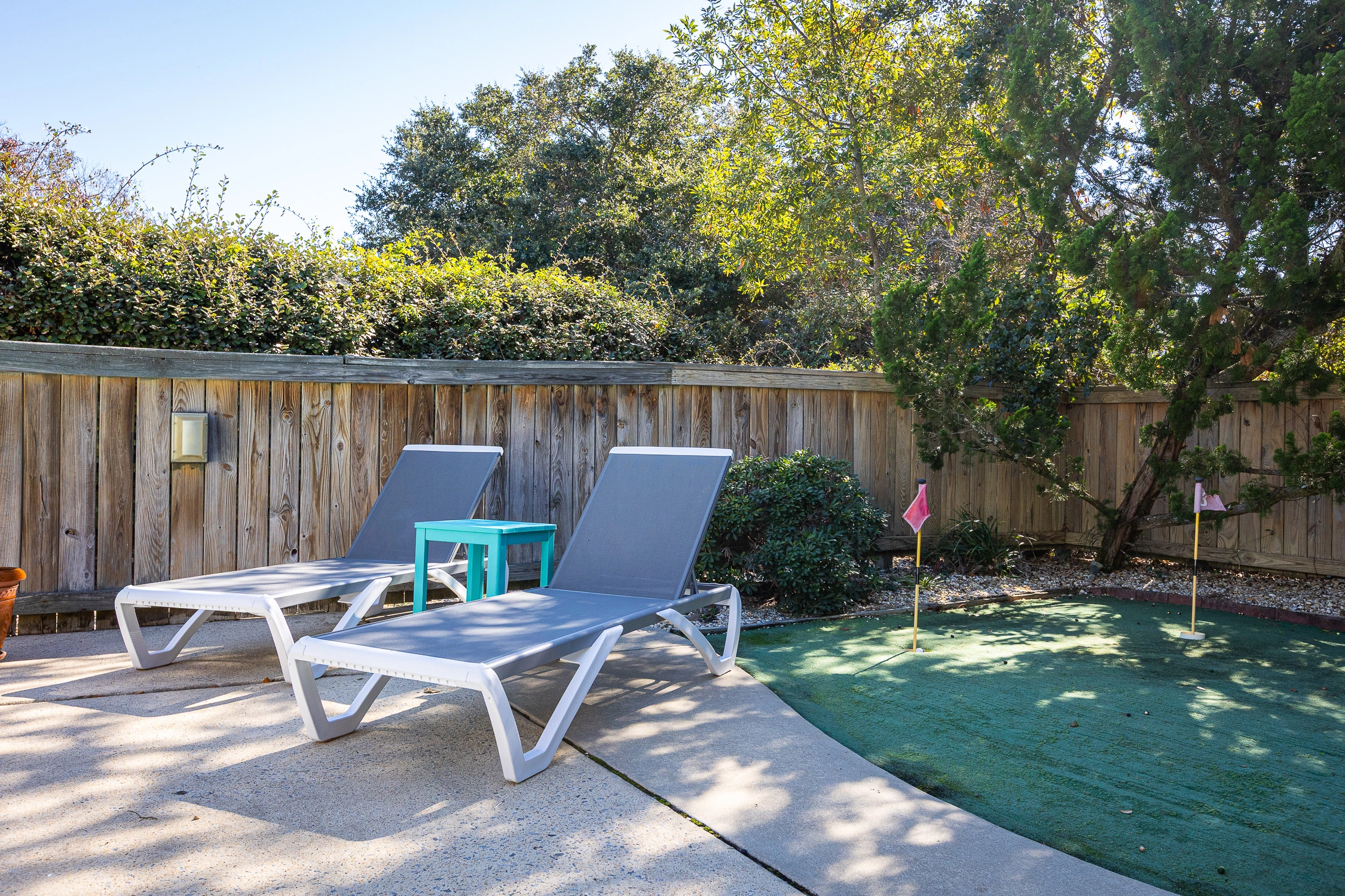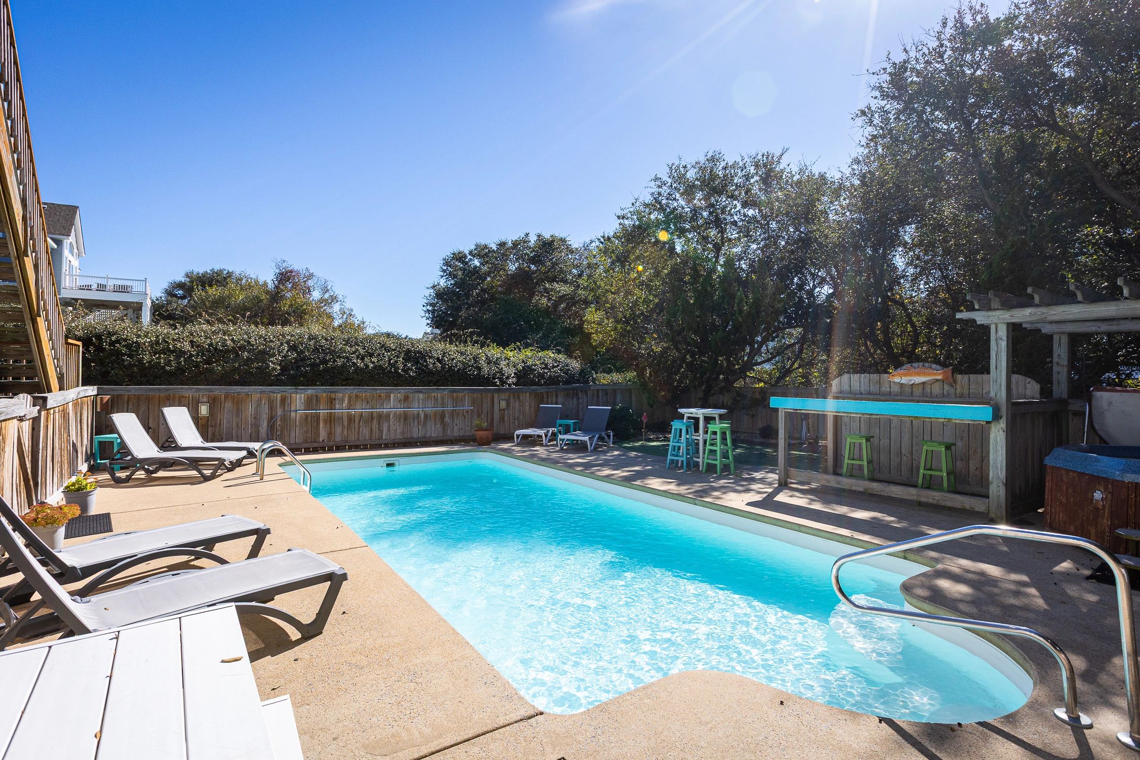 Private pool, hot tub, tiki bar, putting green, charcoal grill.