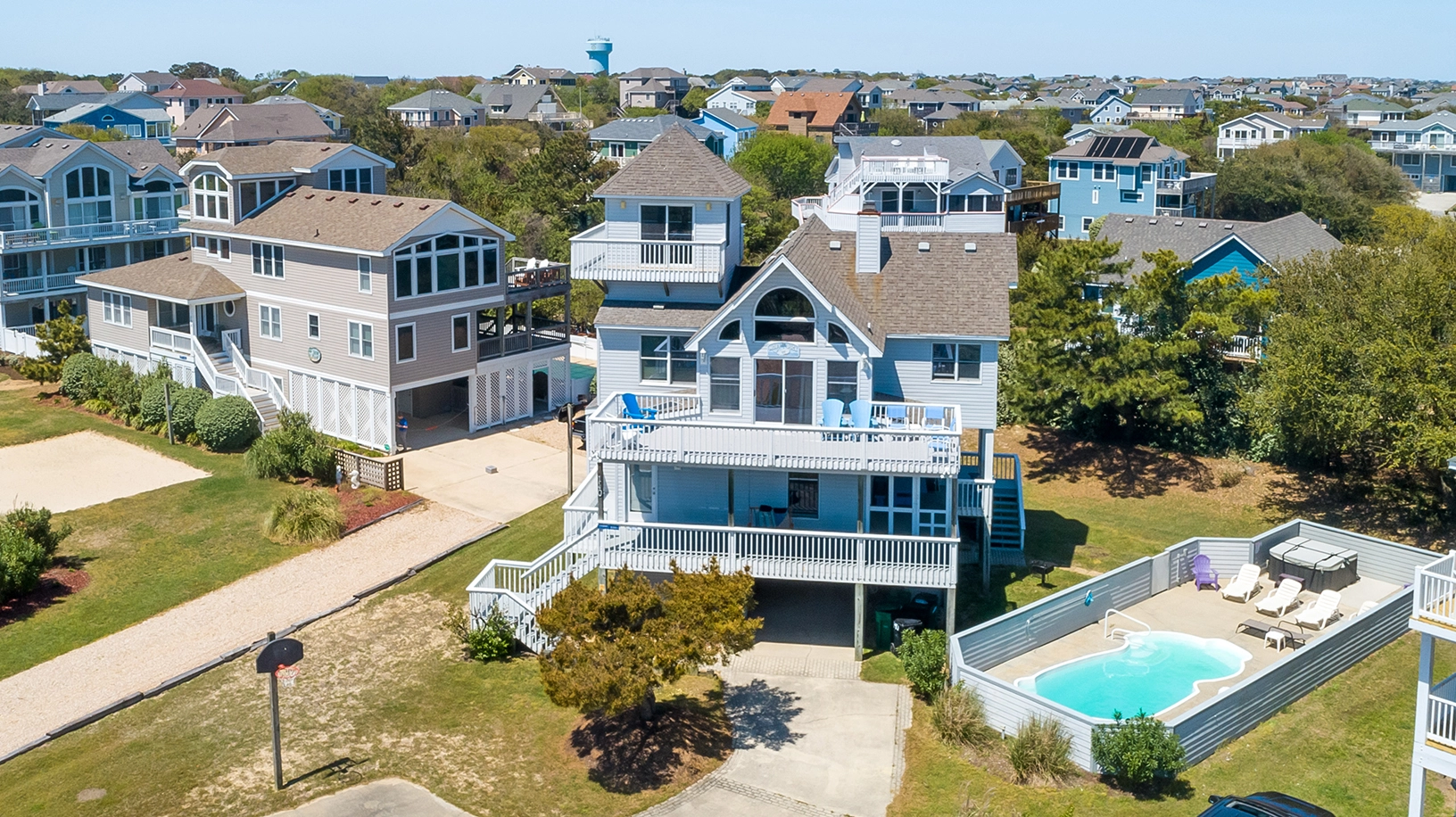 "Very well stocked! From the kitchen to games and pool toys, chairs for the beach. we had a great week. Such a great location, unfortunately covid messed up eating out and enjoying a lot that Duck has to offer! Would recommend! Outside the crows nest a piece of siding had come loose and 1 rail at deck was loose. Flies at the pool were annoying, even when not eating! Check in and out was easy!"