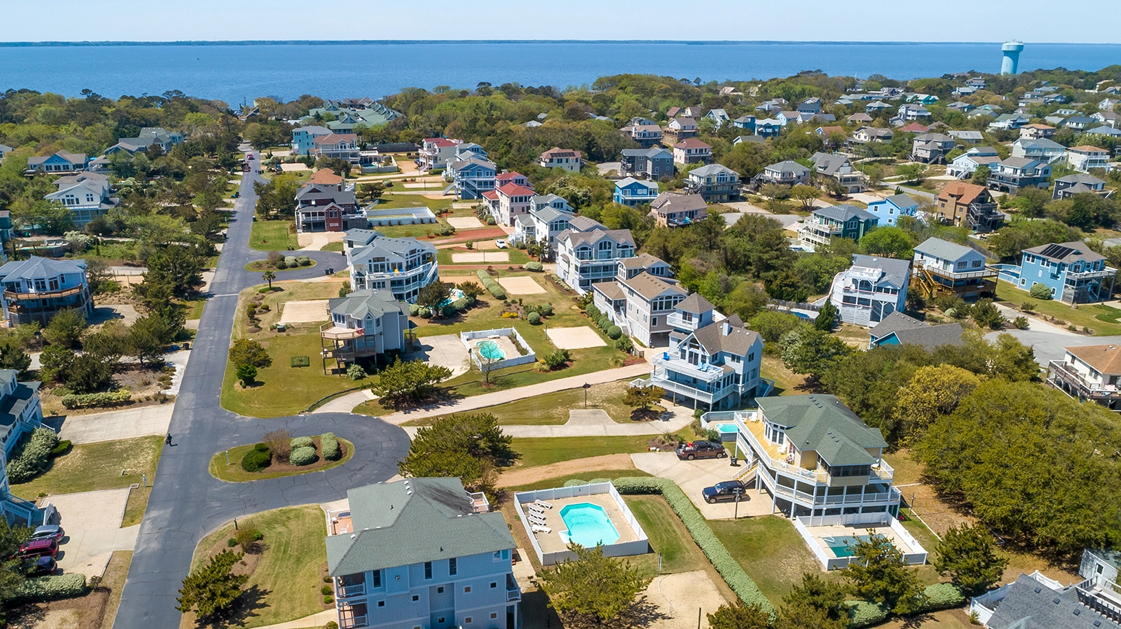 "Multiple bedrooms with bathrooms. Great size for our extended family. Close to.beach and town.lived the swimming pool"