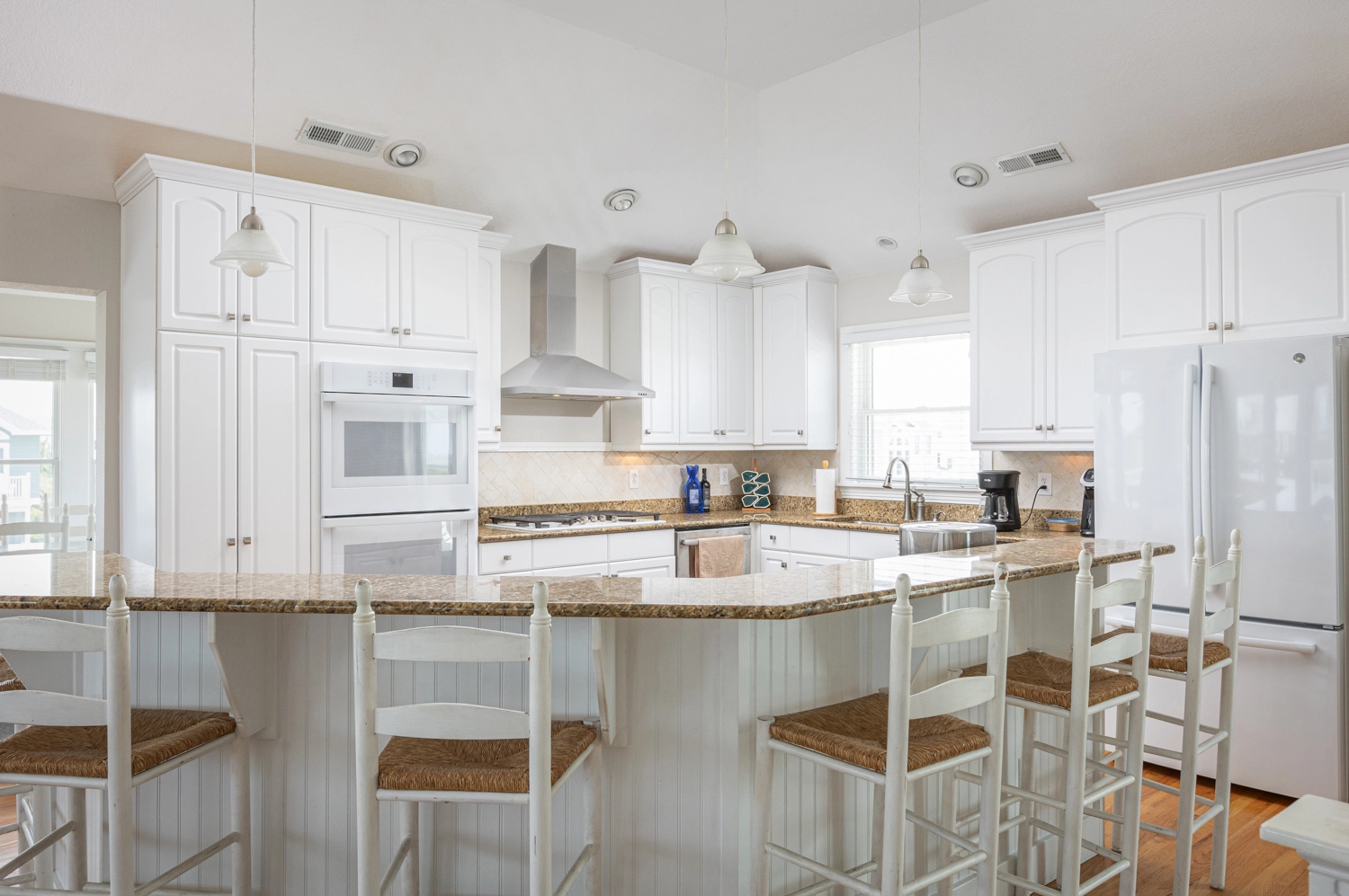 "The house was decorated nicely. The seating in the kitchen area was great. the bedrooms were a nice size. We could see the ocean from the house and the walk to the ocean was very short. The big refrigerator served us nicely."