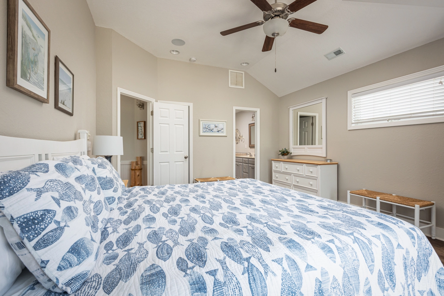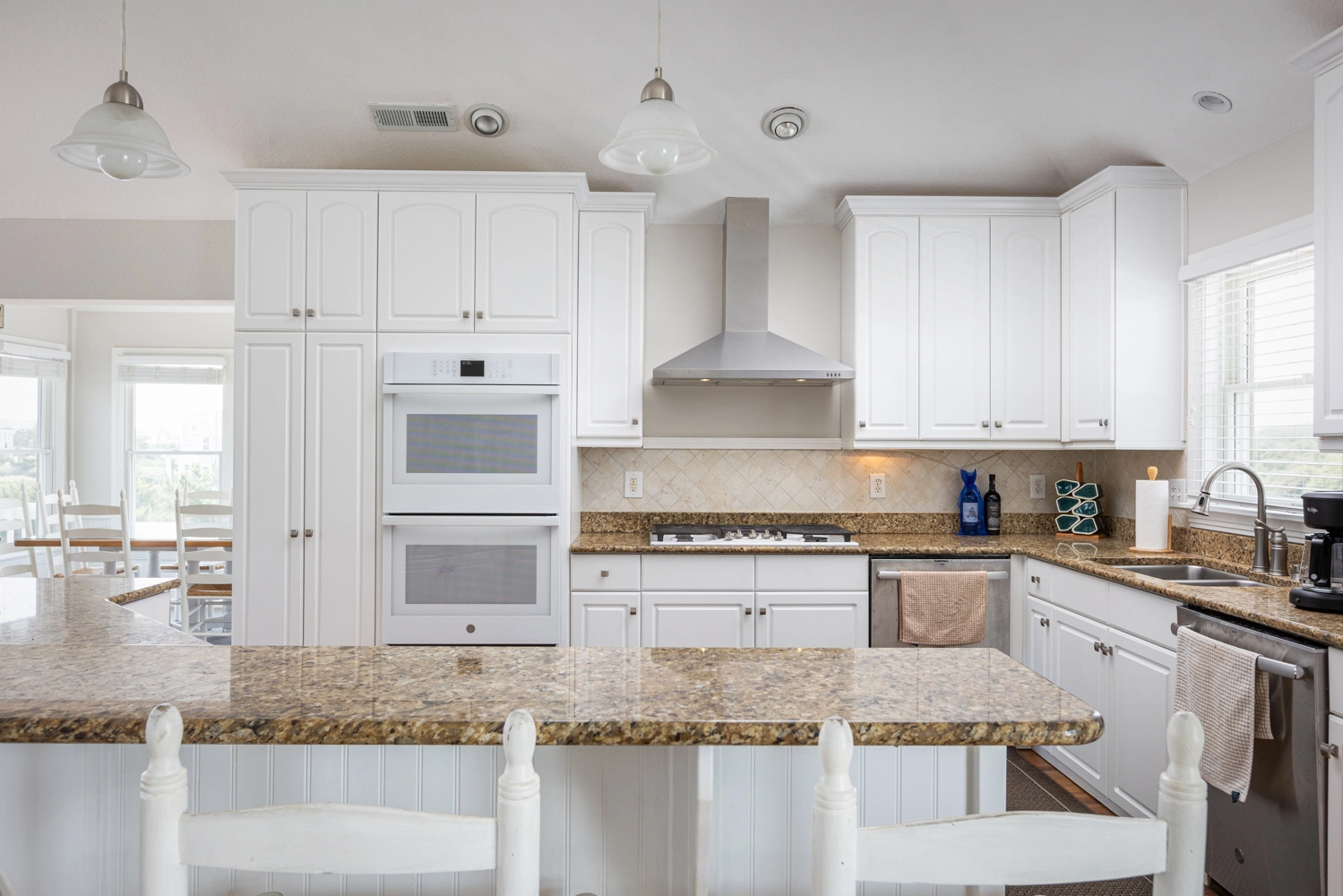 "Beautiful roomy home! Quick walk to the beach with ocean views even though not 'ocean front'. Our family and friends loved having the volleyball net and played all week! Kitchen is one of the best stocked I've been in regarding cookware, etc. Loved the house and had a great week!"
