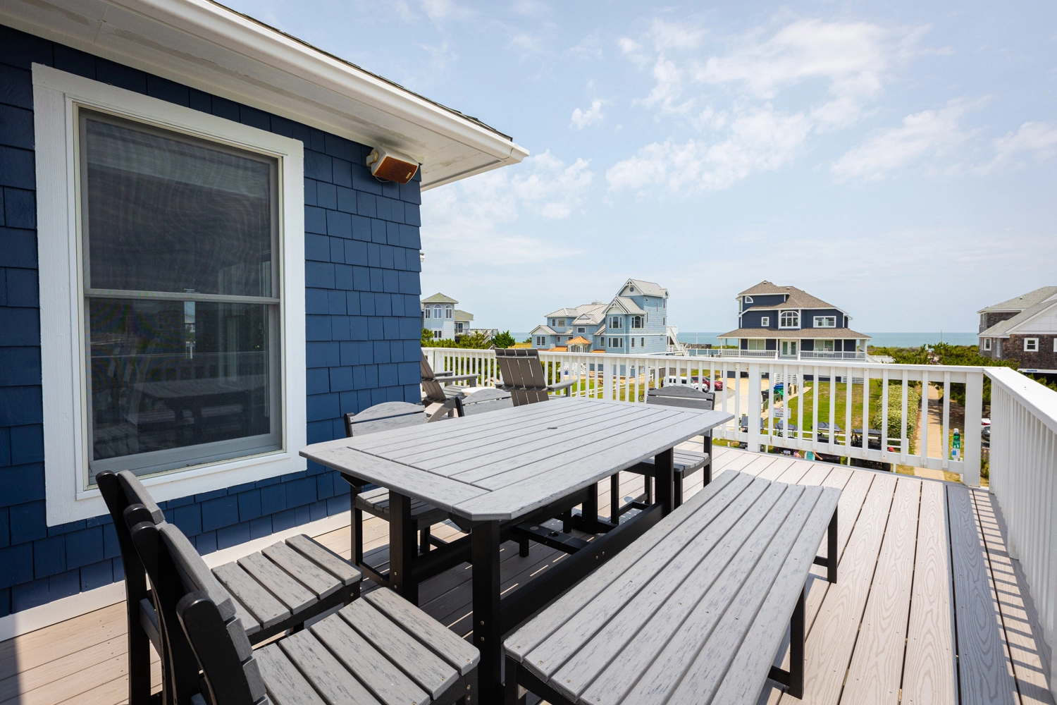 "Location to the beach and town of Duck. Wonderful top level with great tables and seating arrangements. Great pool and hot tub area."