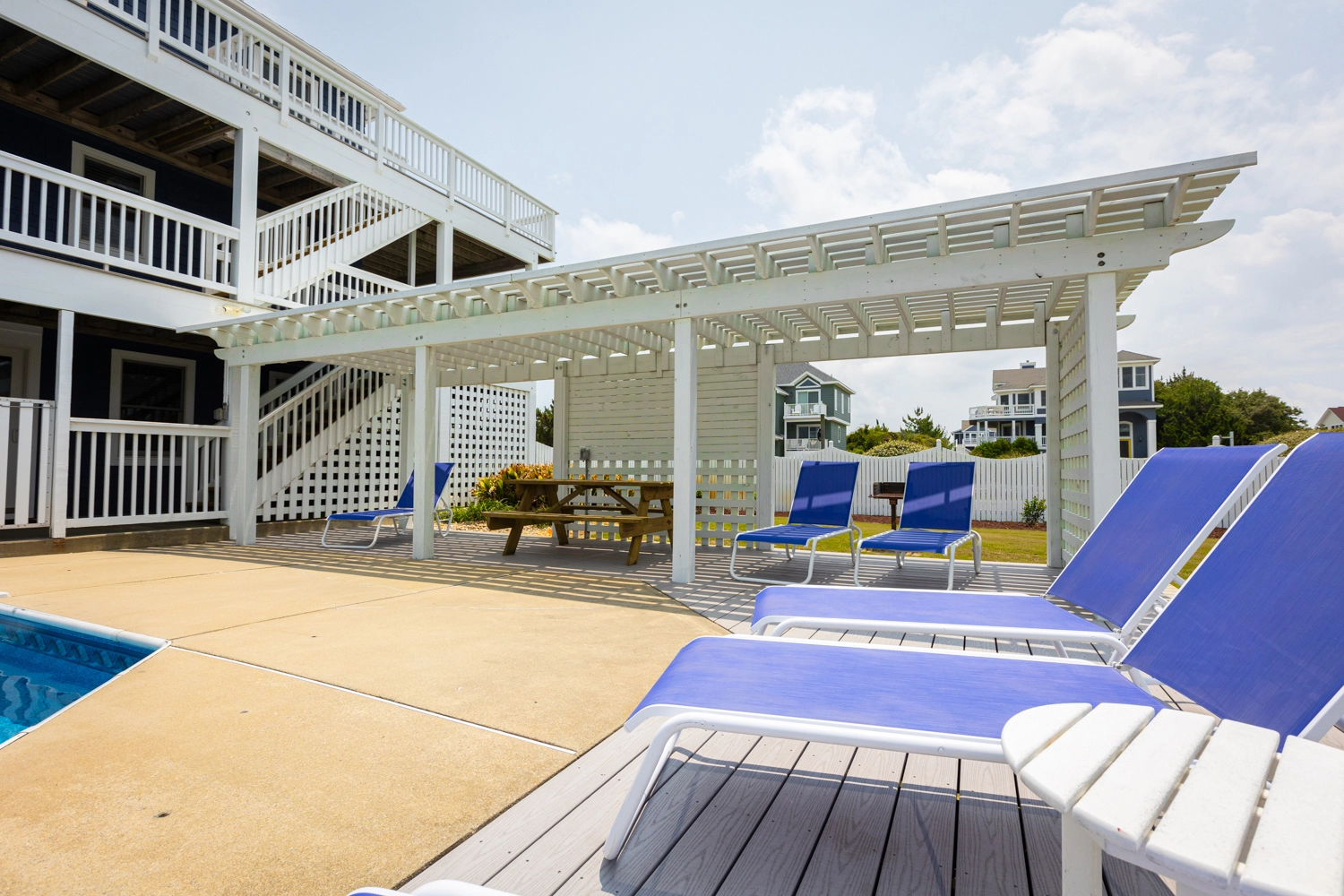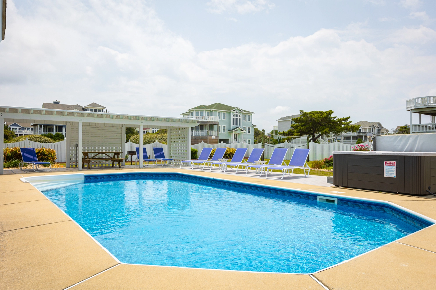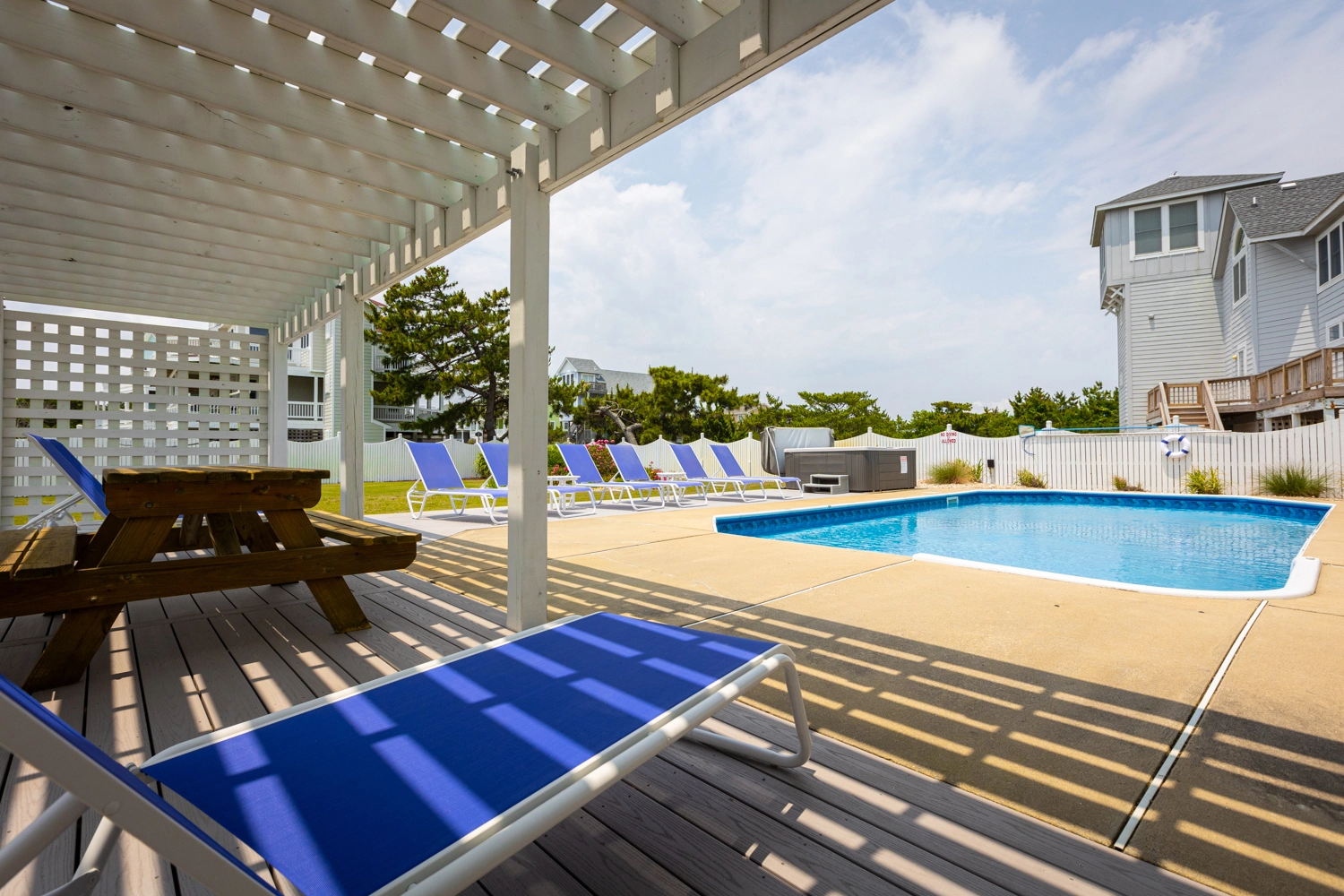 "White Sands II was perfect for our gathering of 3 families. First, the location is so convenient -- it's across the street from the beach path, which made it very easy to go back and forth and to bring all of our stuff to the beach. It's proximity to downtown Duck was also great, so we could walk/ride bikes to the restaurants and shops (our teenagers loved this freedom). The house itself is very spacious, clean and had everything we needed. Lastly, the outdoor space was nice -- the pool is a good size, the lounge chairs were nice, and the pergola provided a lot of shade to escape from the sun. There's also a grassy area for lawn games. We would definitely rent this home again. Thank you!"