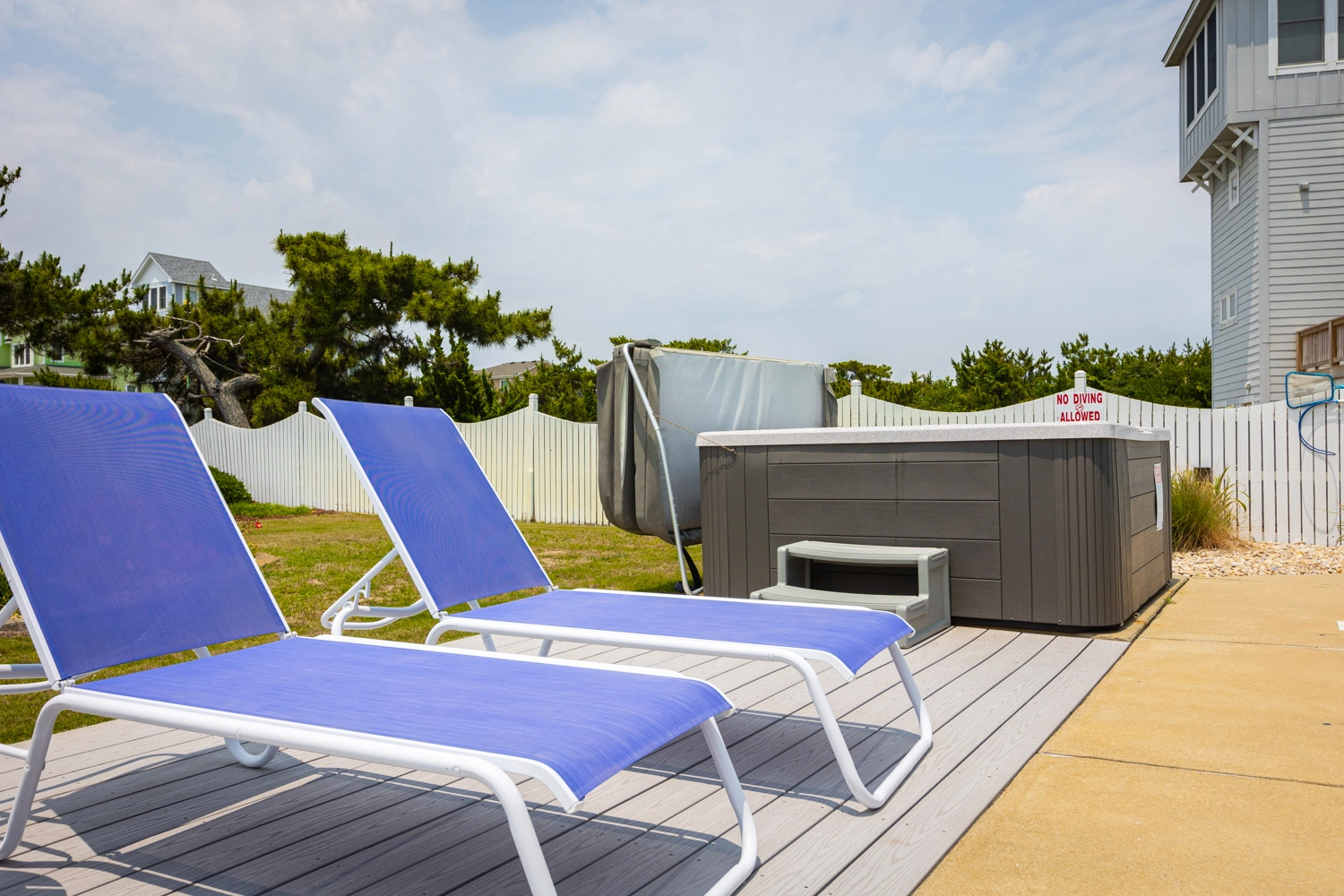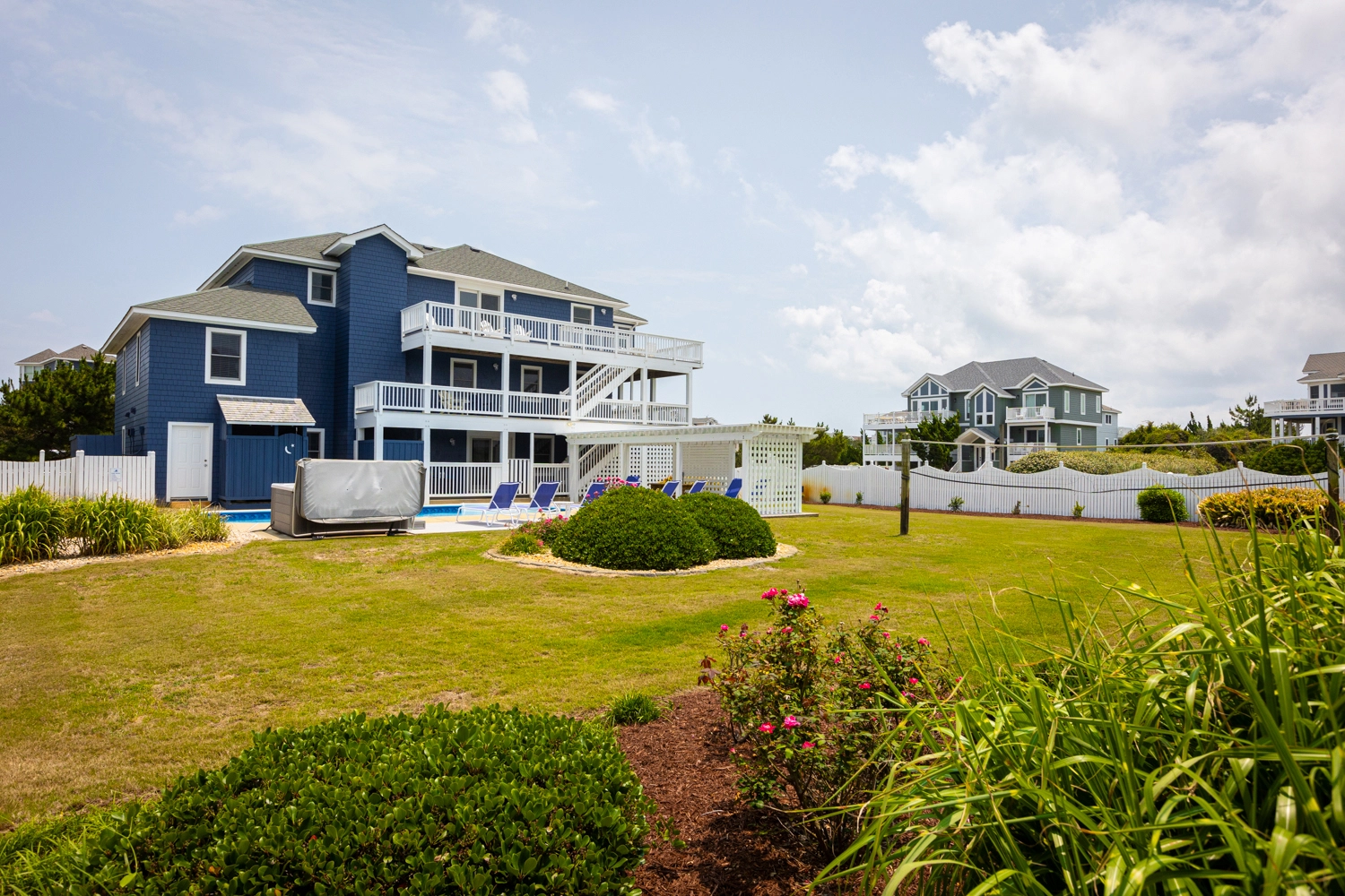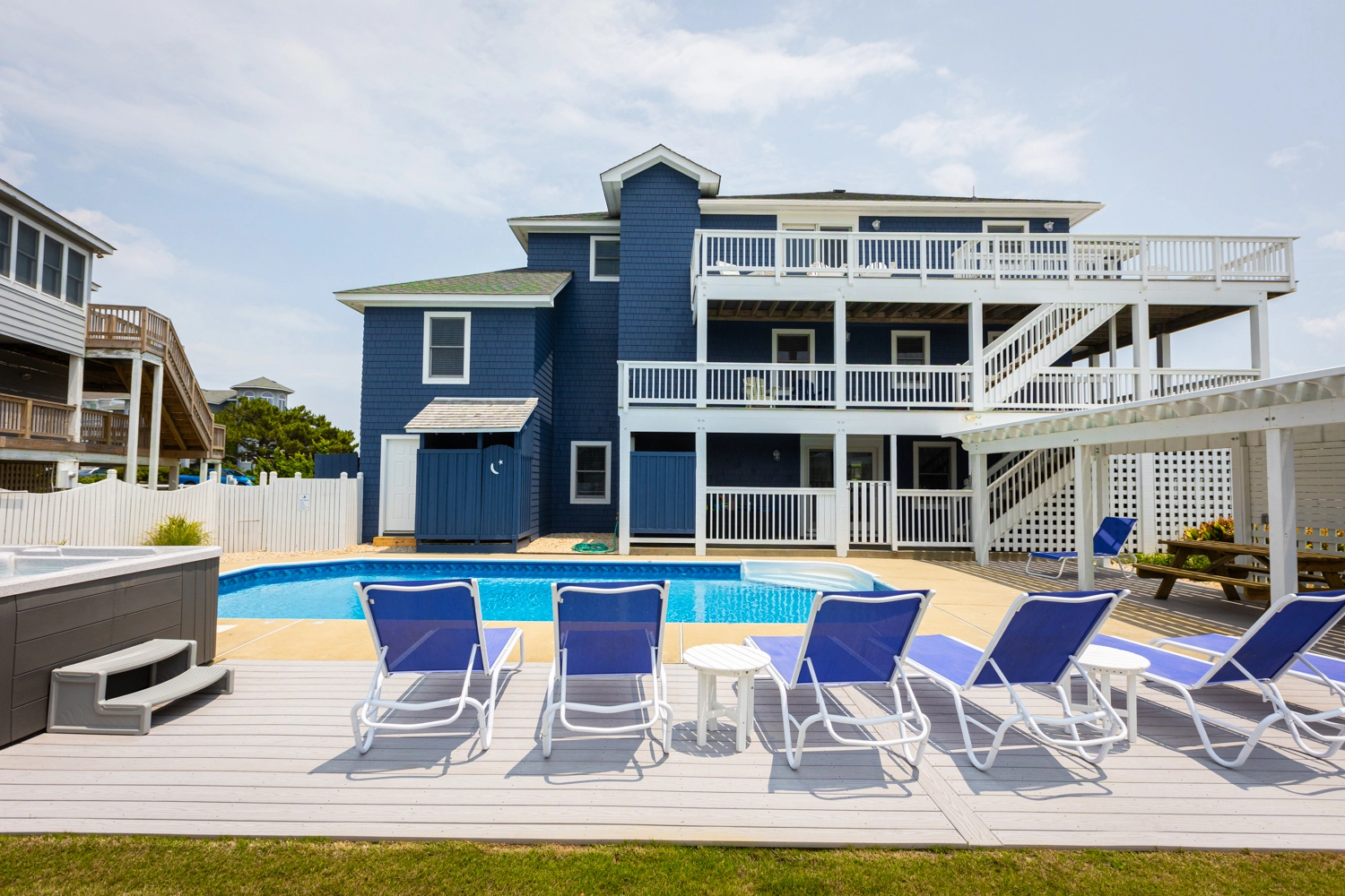 "This was our first time staying at this vacation house and we absolutely loved it. The house is in great condition. It was very clean when we arrived. The yard is beautiful - great pool, hot tub and a nice big yard for the kids to play. The decks and outdoor furniture are very nice. We enjoyed the beautiful ocean views. I noticed a lot of items in the house looked new (rugs, some of the furniture, etc.). The beach access is right across the street which is great. We usually stay further north where the beaches are less crowded, so that was the only negative I can think of. It wasn't a problem though, we just made sure to get down to the beach with our chairs and umbrellas early each a.m. to make sure we had a spot. We loved being able to walk into Duck to shops and restaurants. Kitchen is also well stocked, we cooked many large family meals while we were here. We brought down our own crockpot but didn't need to, we found 2 in the kitchen!"