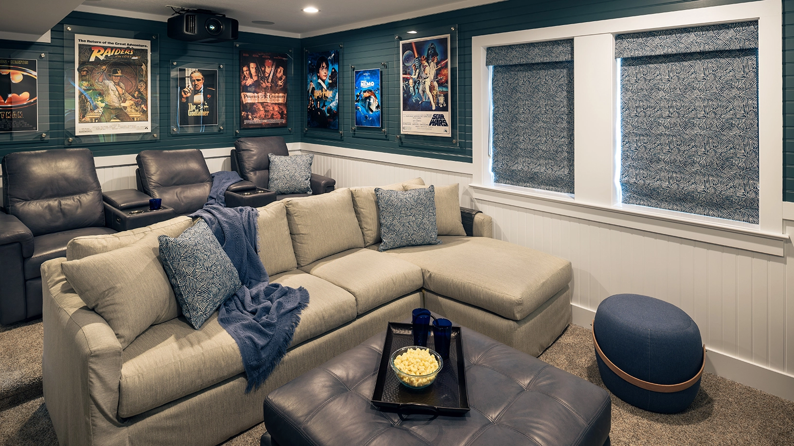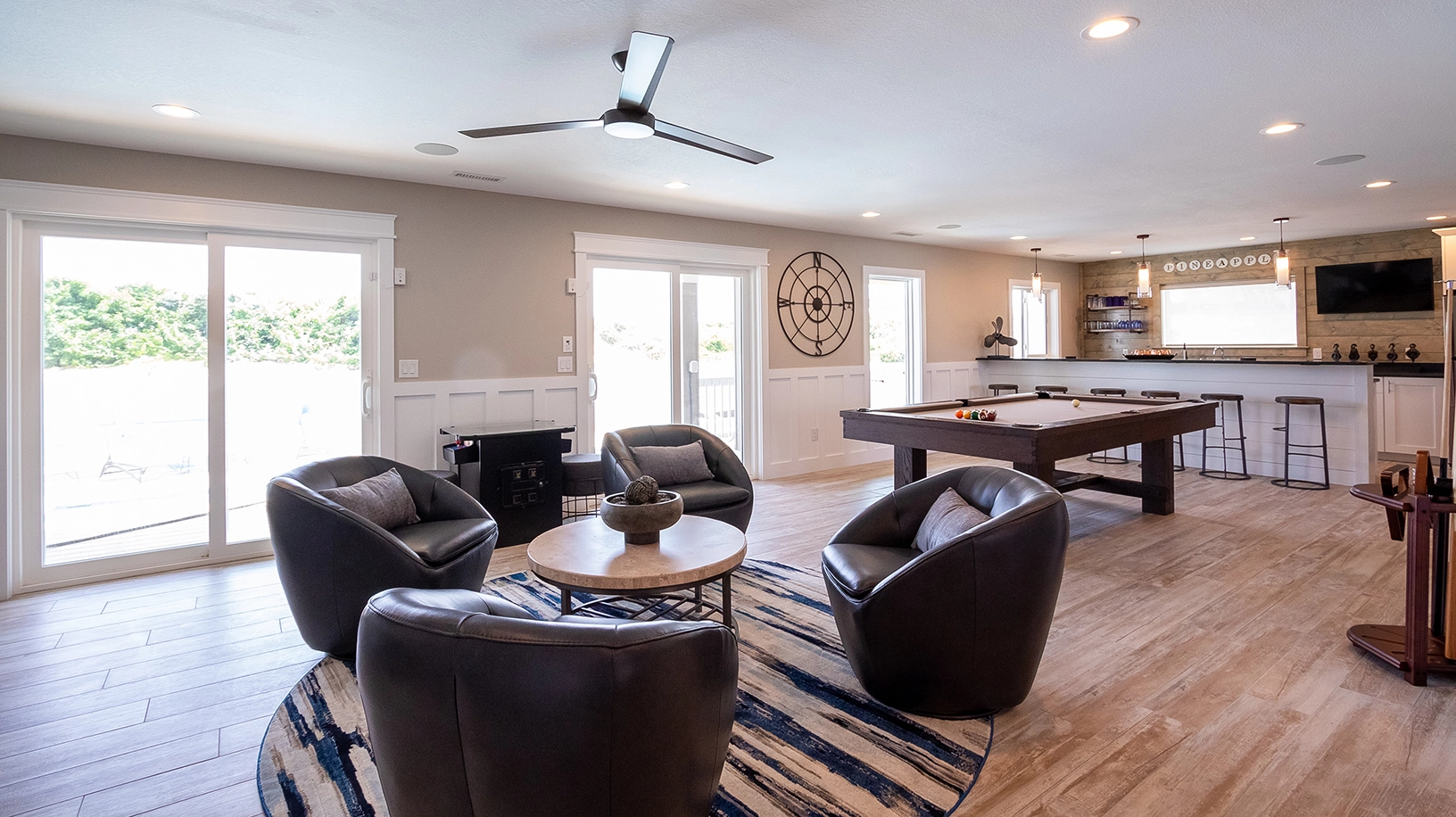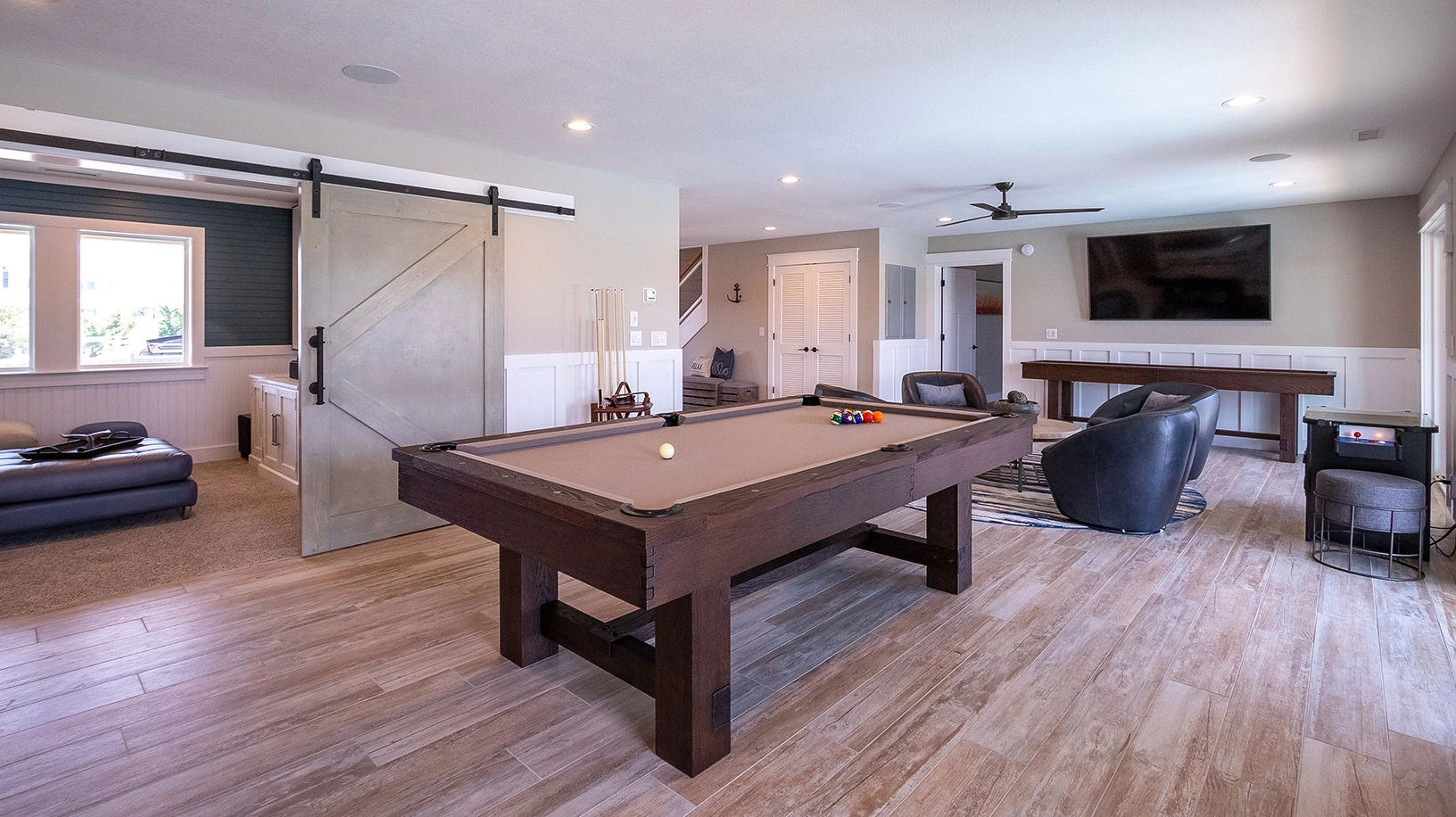 Theatre room; rec room with pool table and wet bar; laundry.