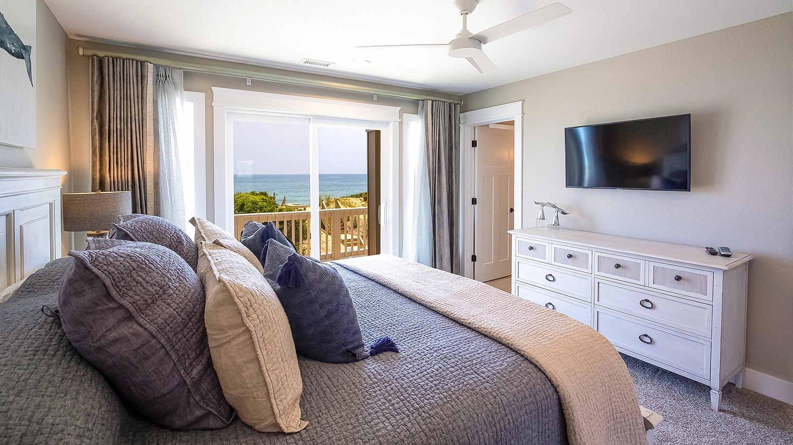 "This home is very clean and beautiful. It is well furnished with up-to-date appliances and Decour. I was impressed with the appliances in the kitchen, utensils and cookware provided! My only suggestion would be to add a landing area atop the dune to the beach and perhaps add railings along all of the steps to the beach access for the elderly and the young."