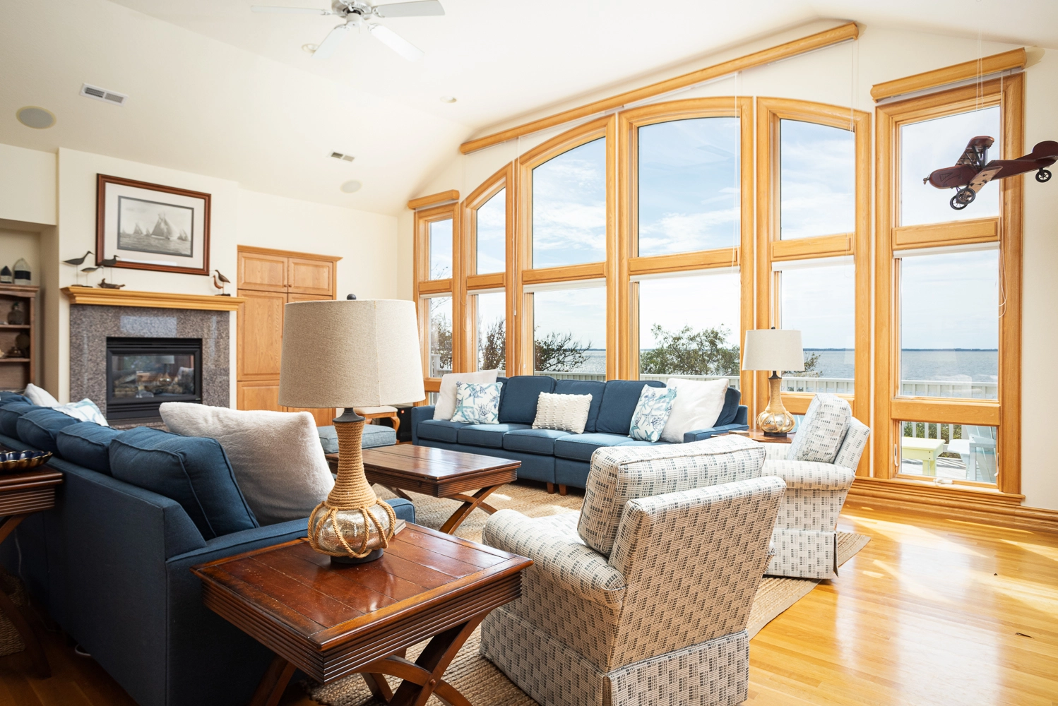 "Spacious with great windows overlooking the sound. Well stocked kitchen."