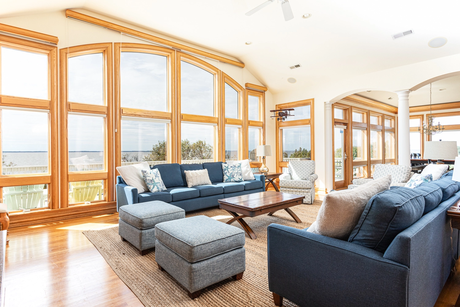 "This was our second time staying at “A Sound View”. We love being on the sound, having an amazing view of the water and sunsets. The two parking spots reserved for the house right next to beach access is very convenient. We had one minor repair request that Twiddy addressed very quickly! The house is big enough to give everyone room to spread between the living area, media room, library and game room in garage. We love this house and hope to return in the future."