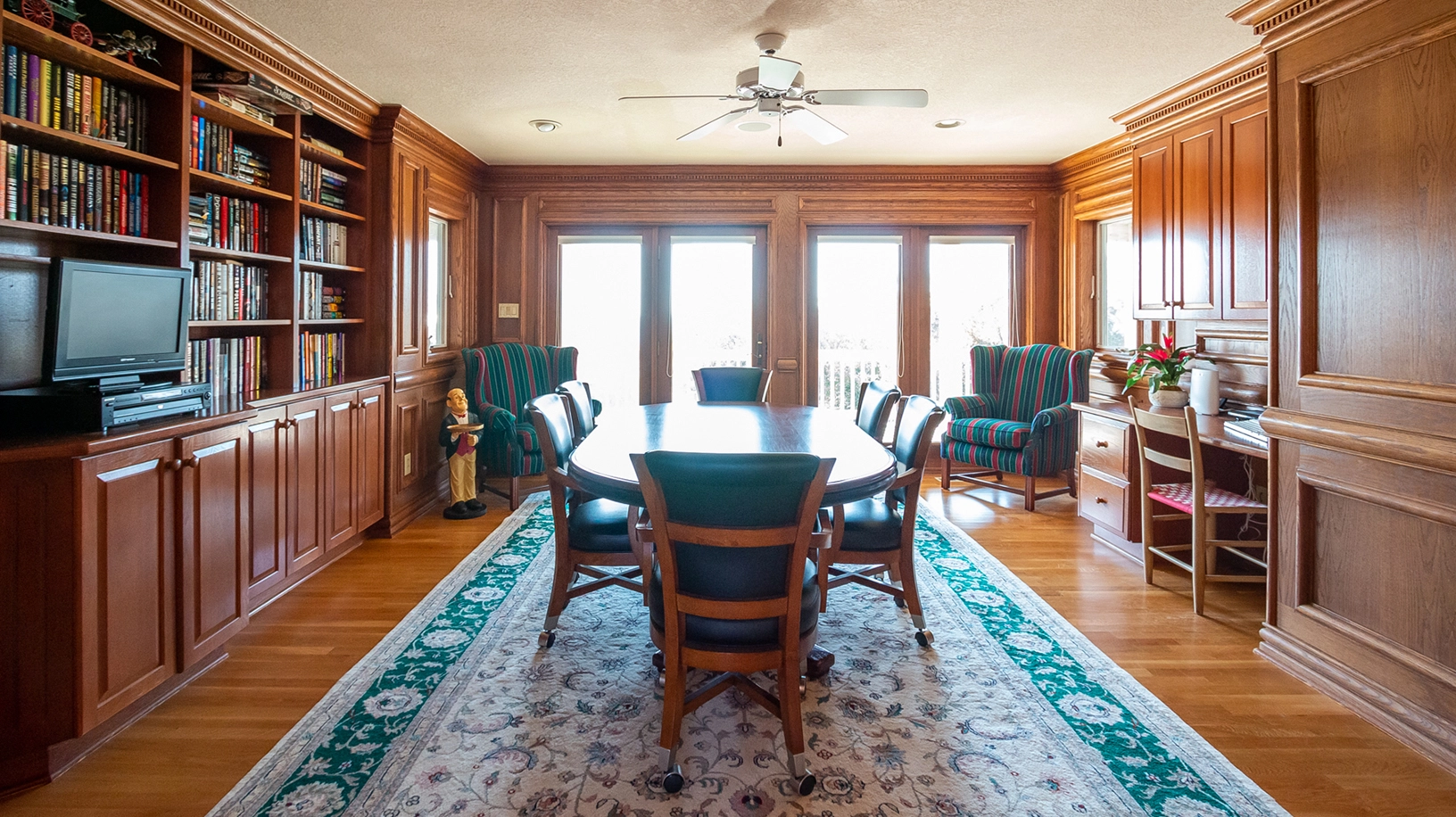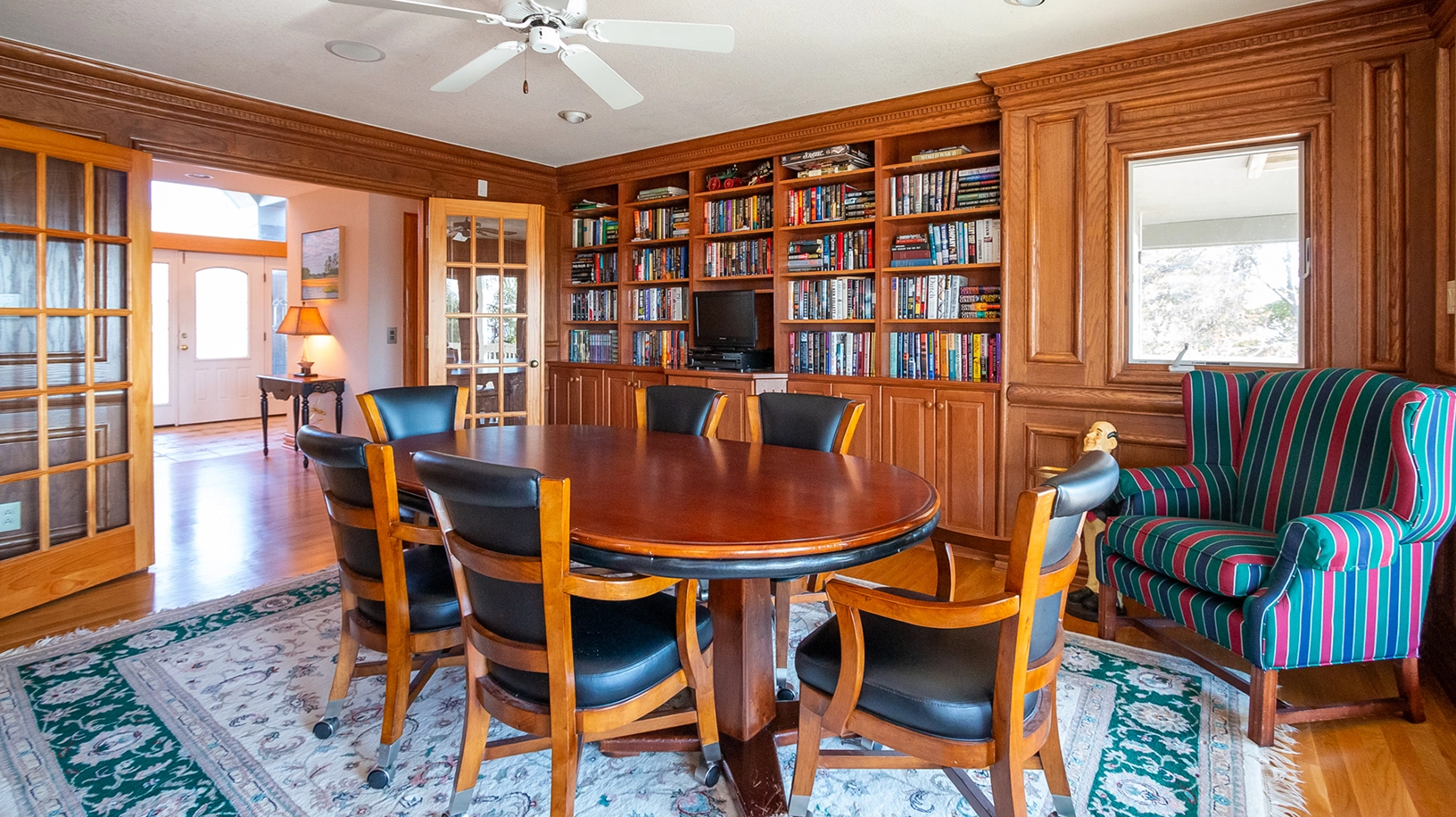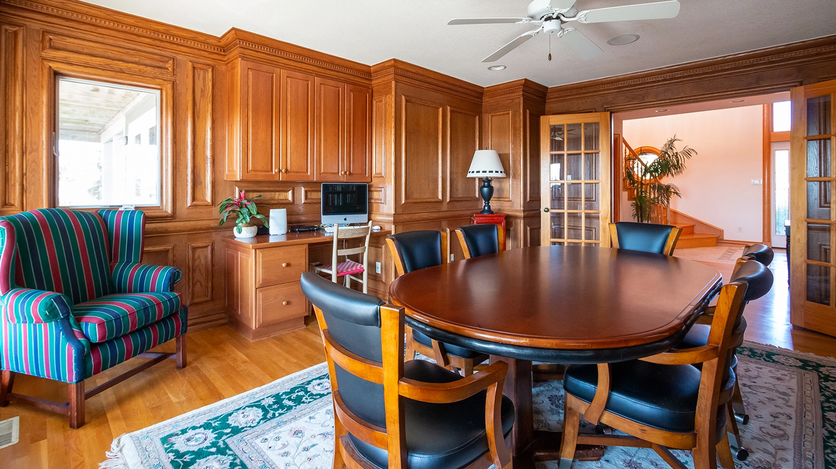 Study with poker table; laundry.