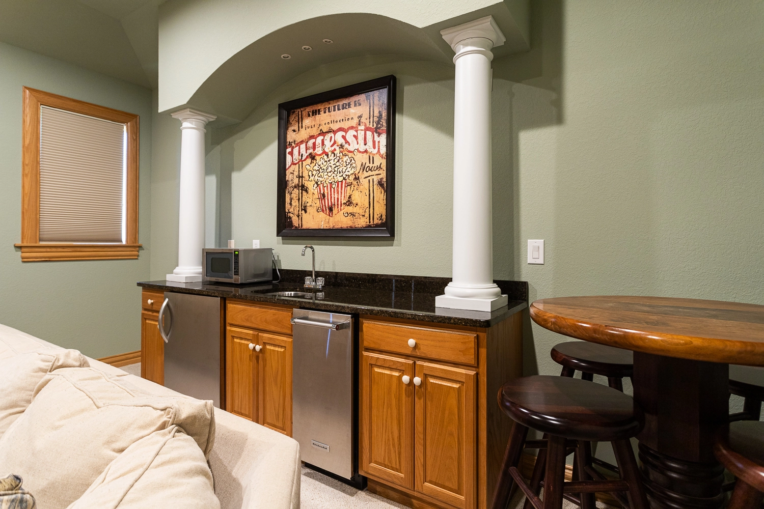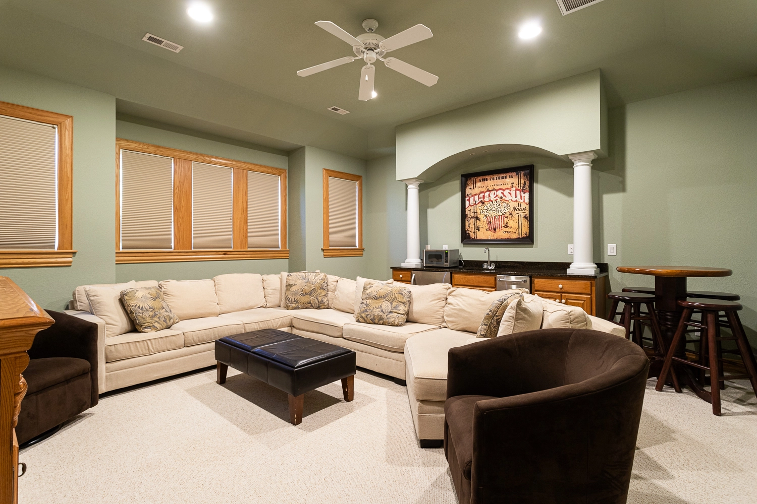 Media room with wet bar. Please note, there are 4 steps to access this part of the house.