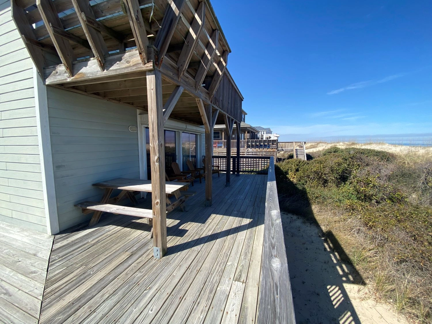 "We loved the location (right on the beach with easy access to the boardwalk) and the fact that we could take our dogs with us. The fact that it was close to Duck (Duck Donuts) was very nice. The beach was not crowded at all especially compared to locations further south from us."