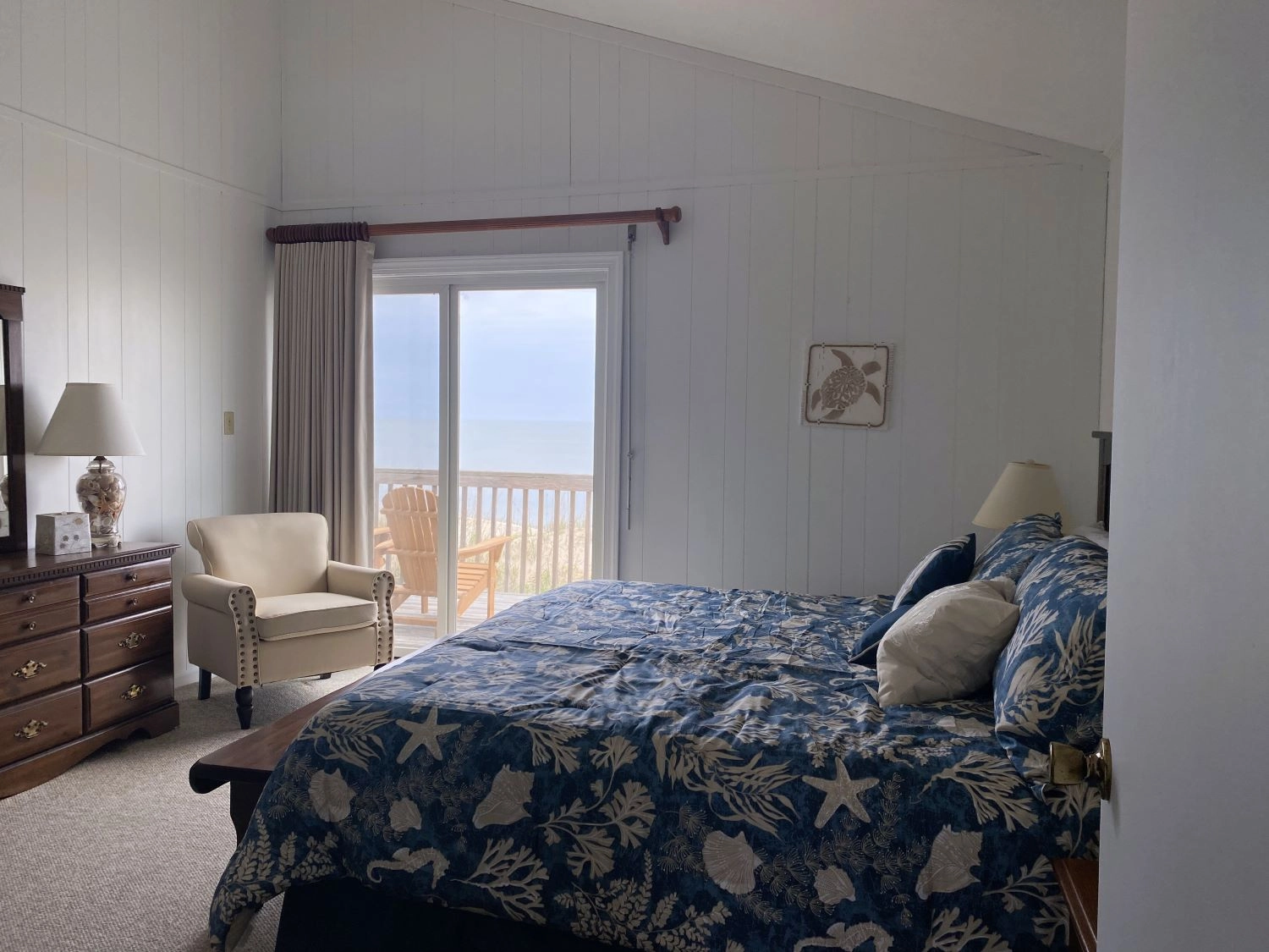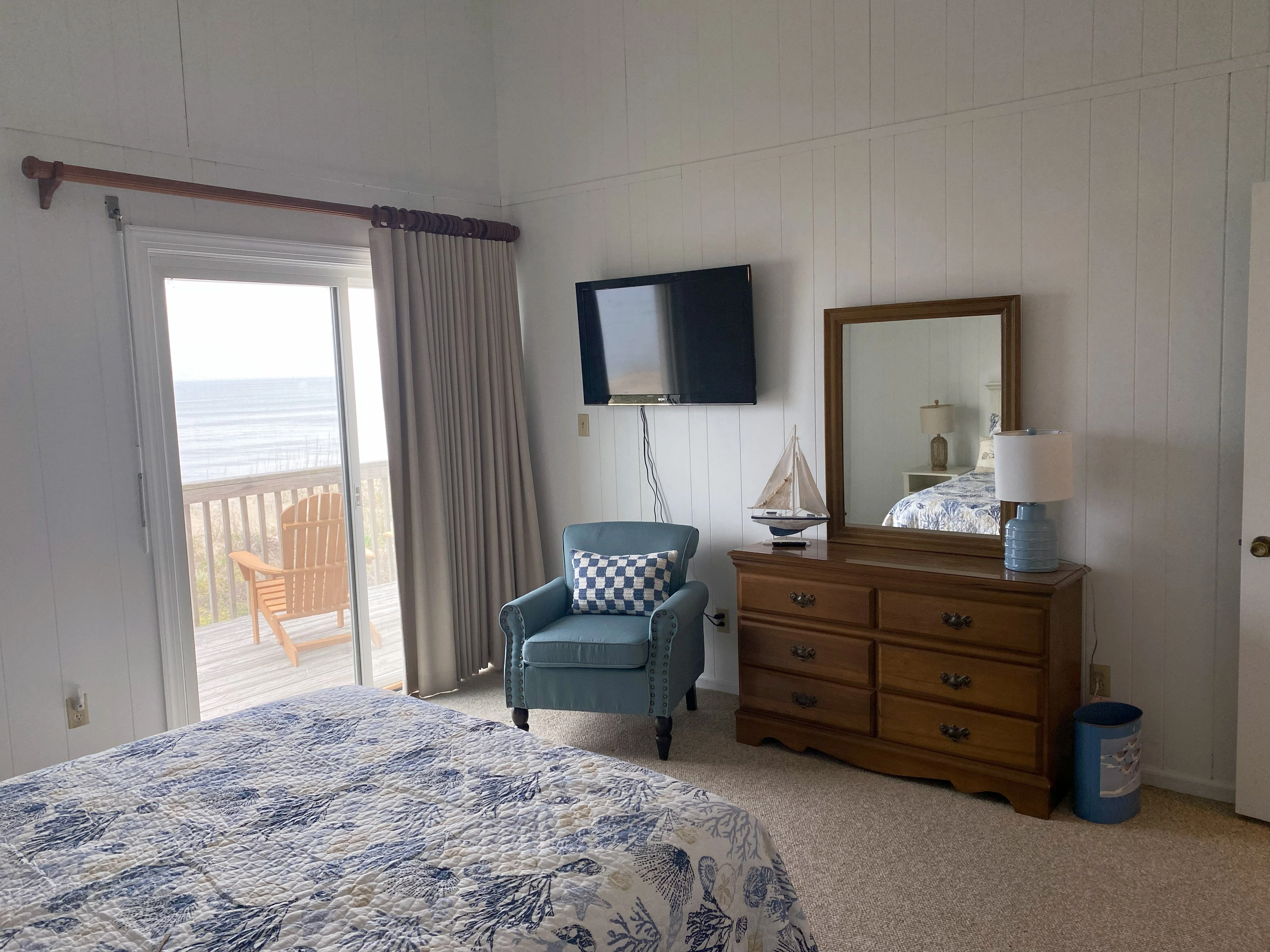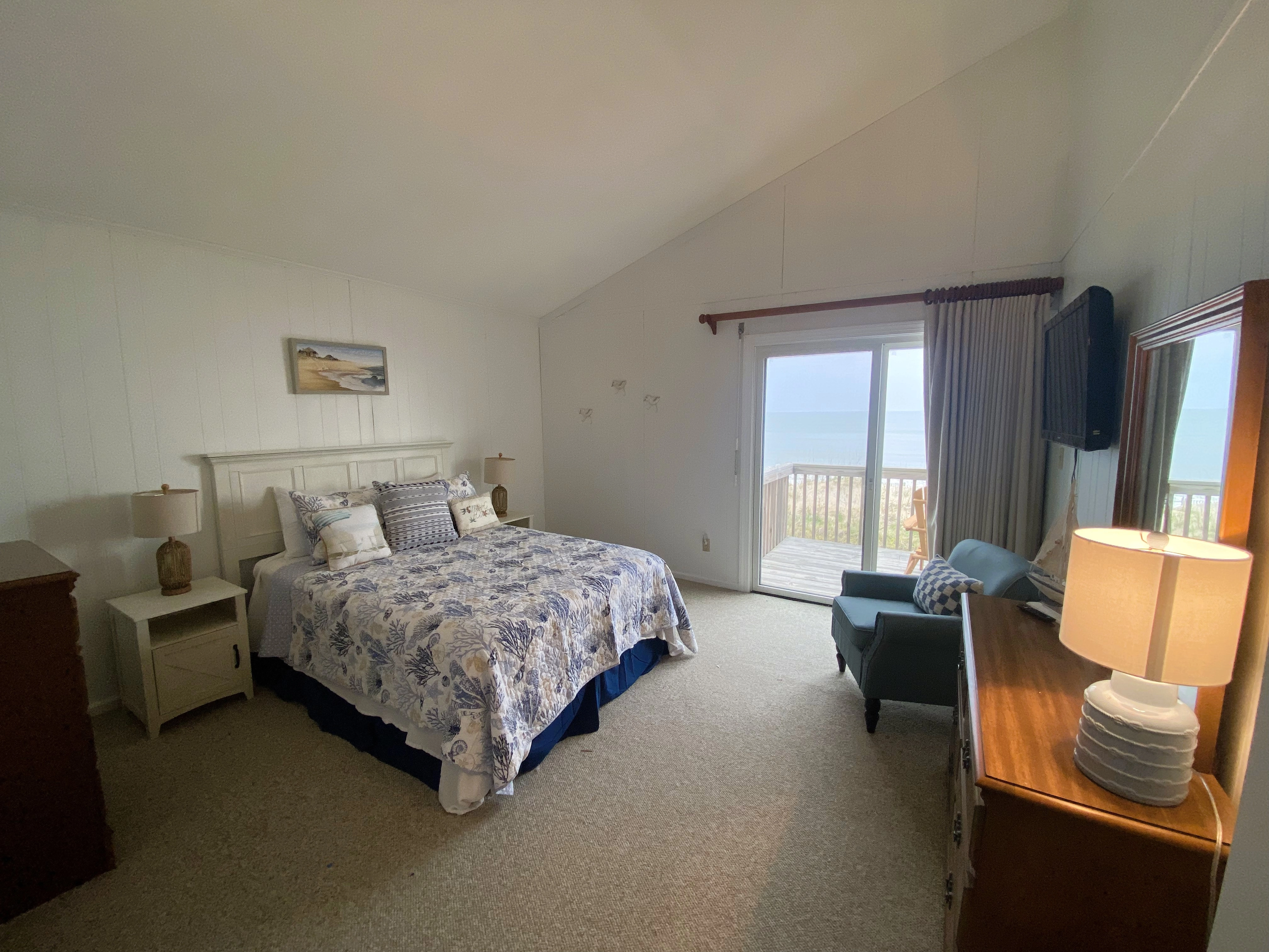 "Love of course being on the ocean/beach. This cute house is just the right size for a smaller crowd being 3 bedrooms, which are a nice size, with great upstairs views from the deck. The living room is very spacious also. It’s got all the features/amenities you would need during your stay and close driving to the town of Duck. Really enjoyed relaxing here and would reserve again."