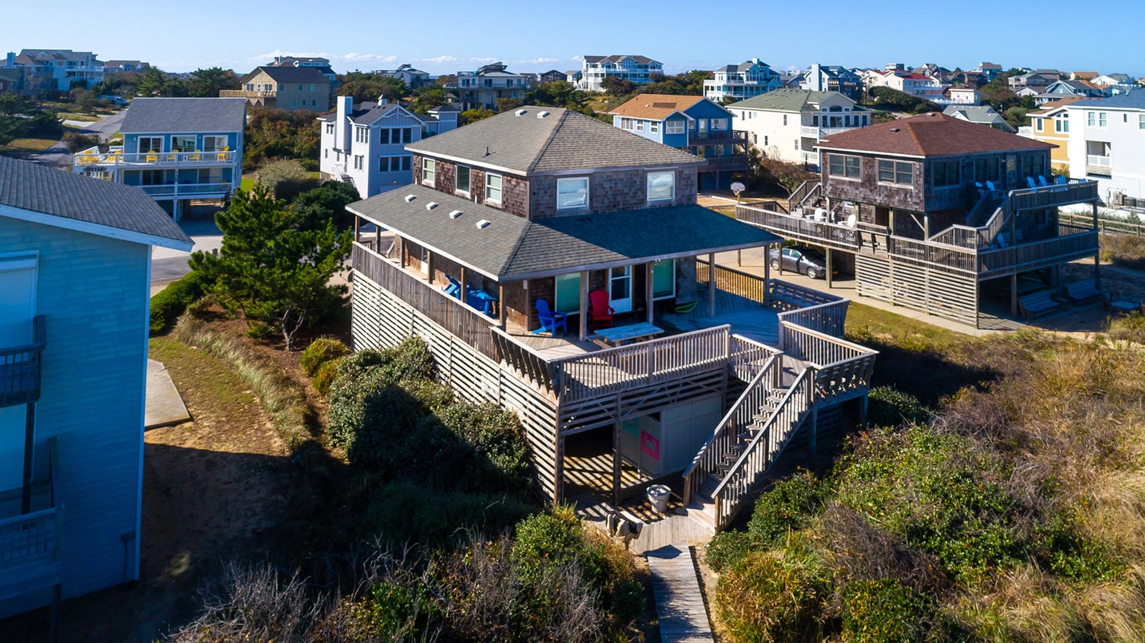 Outside shower, multiple TVs, and community Soundside access.