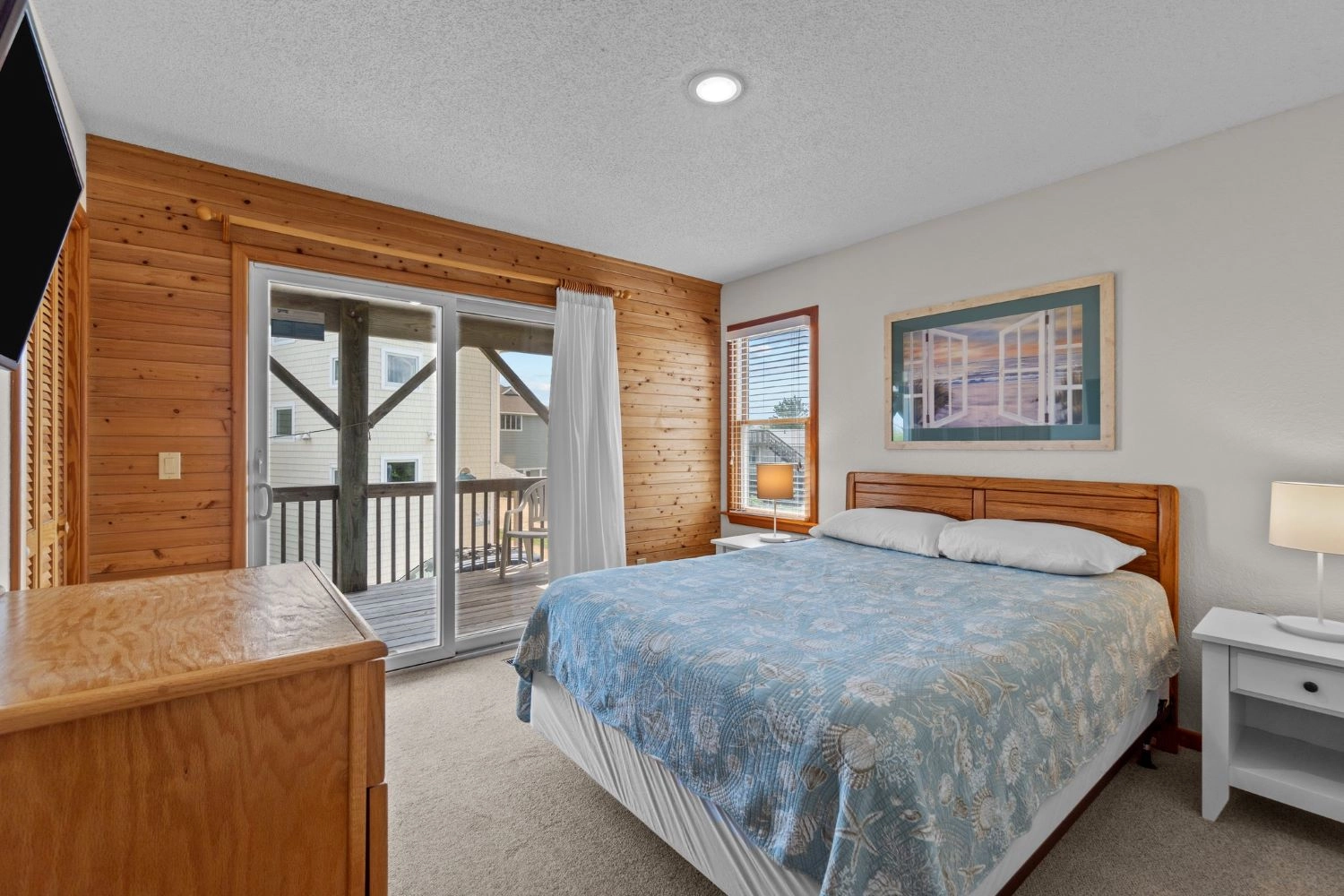 Queen, Shared bath with room 2, Shower/tub combo, Deck access