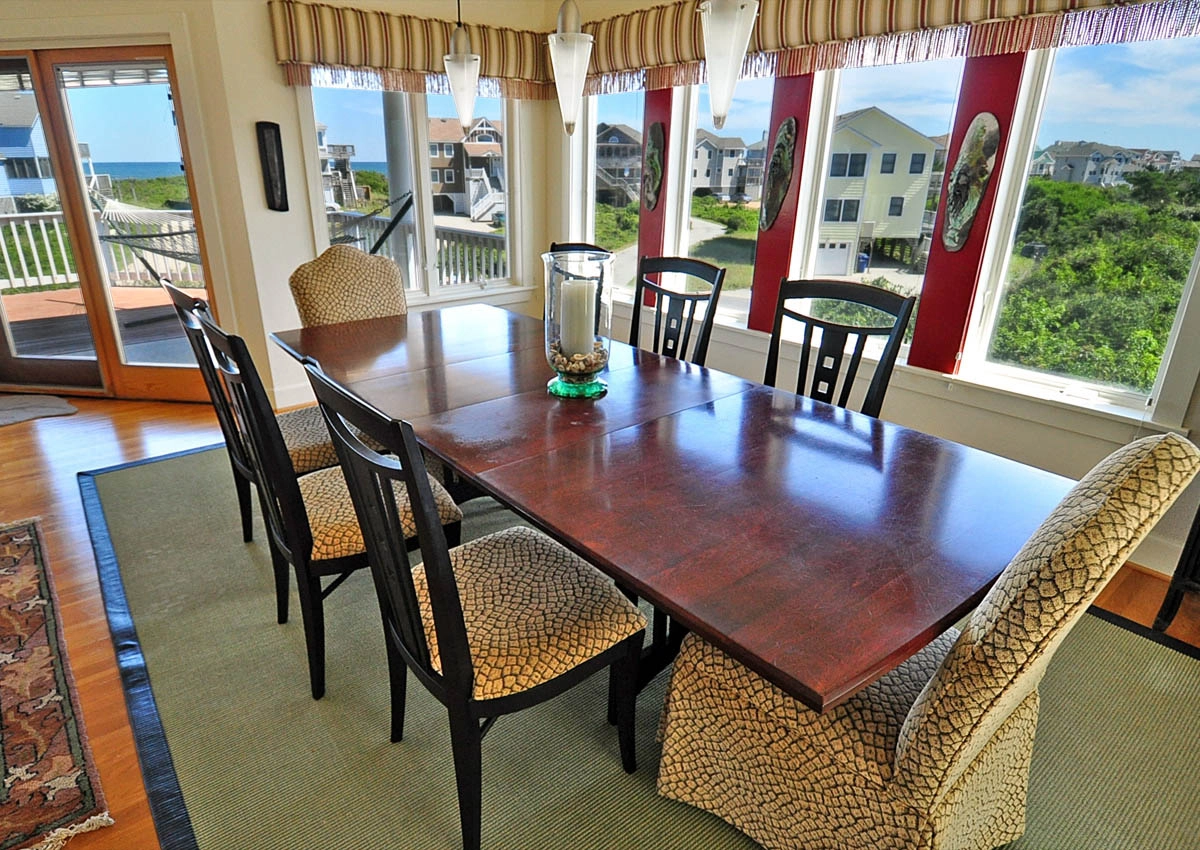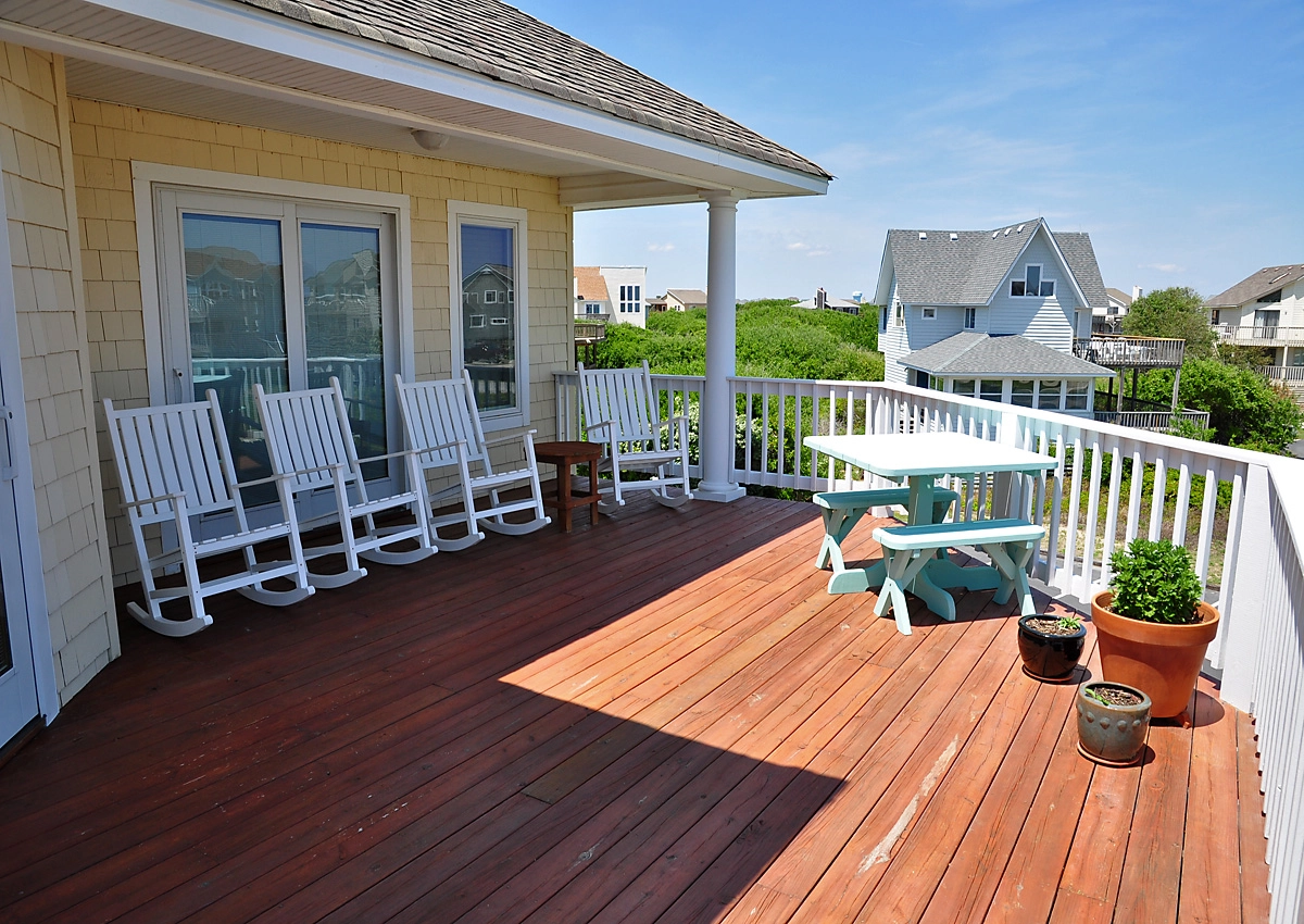 "The home was great! It was beautifully decorated, fully equipped from the kitchen to the whole house sound system and ample TVs, the pool was wonderful, the grill was great, the amount of outside decking was incredible, TWO outside showers, lots of chairs and boogie boards and a terrific pool table. We really enjoyed the little screened porch too. All this just steps away from the beach."
