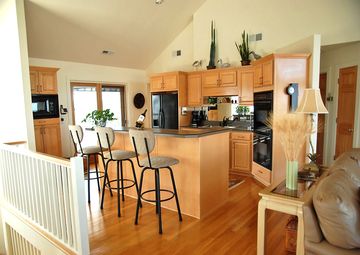 Great room; kitchen; dining area; screened porch.