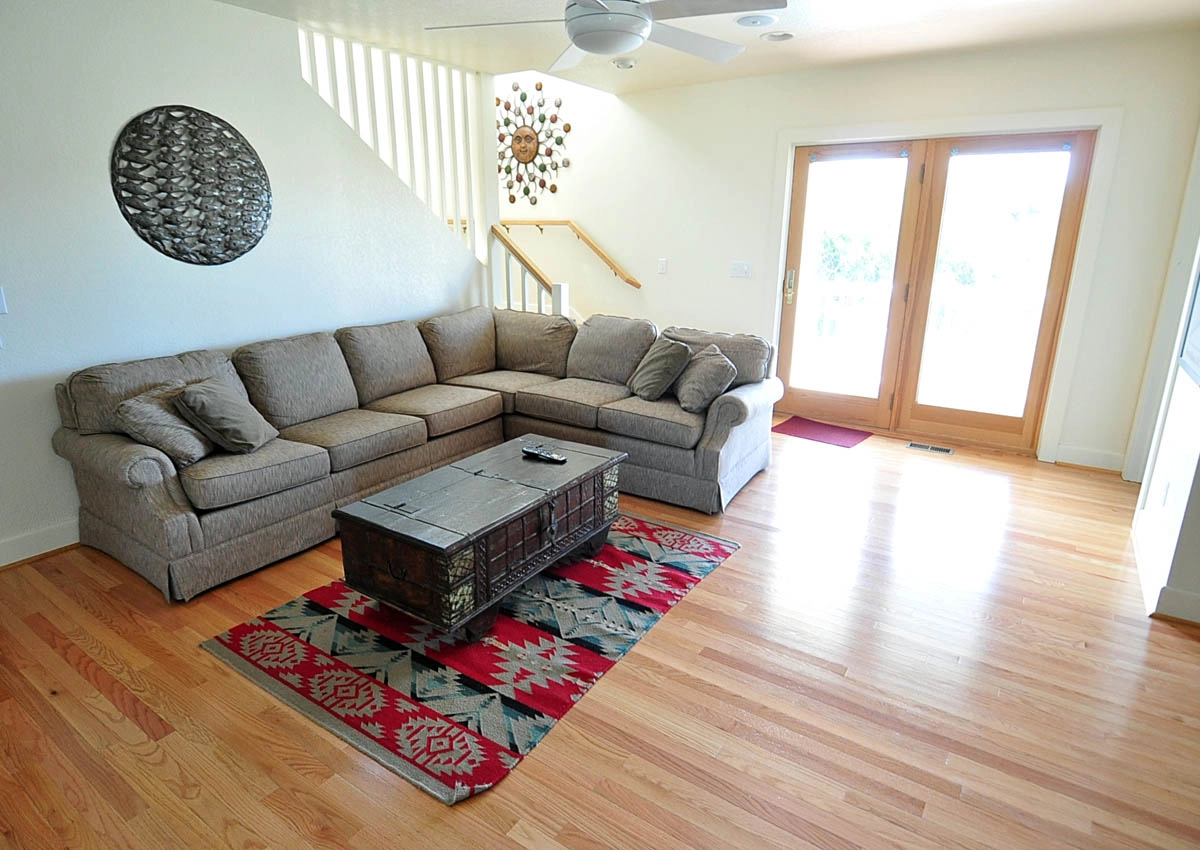 Den; covered deck; hot tub; laundry.