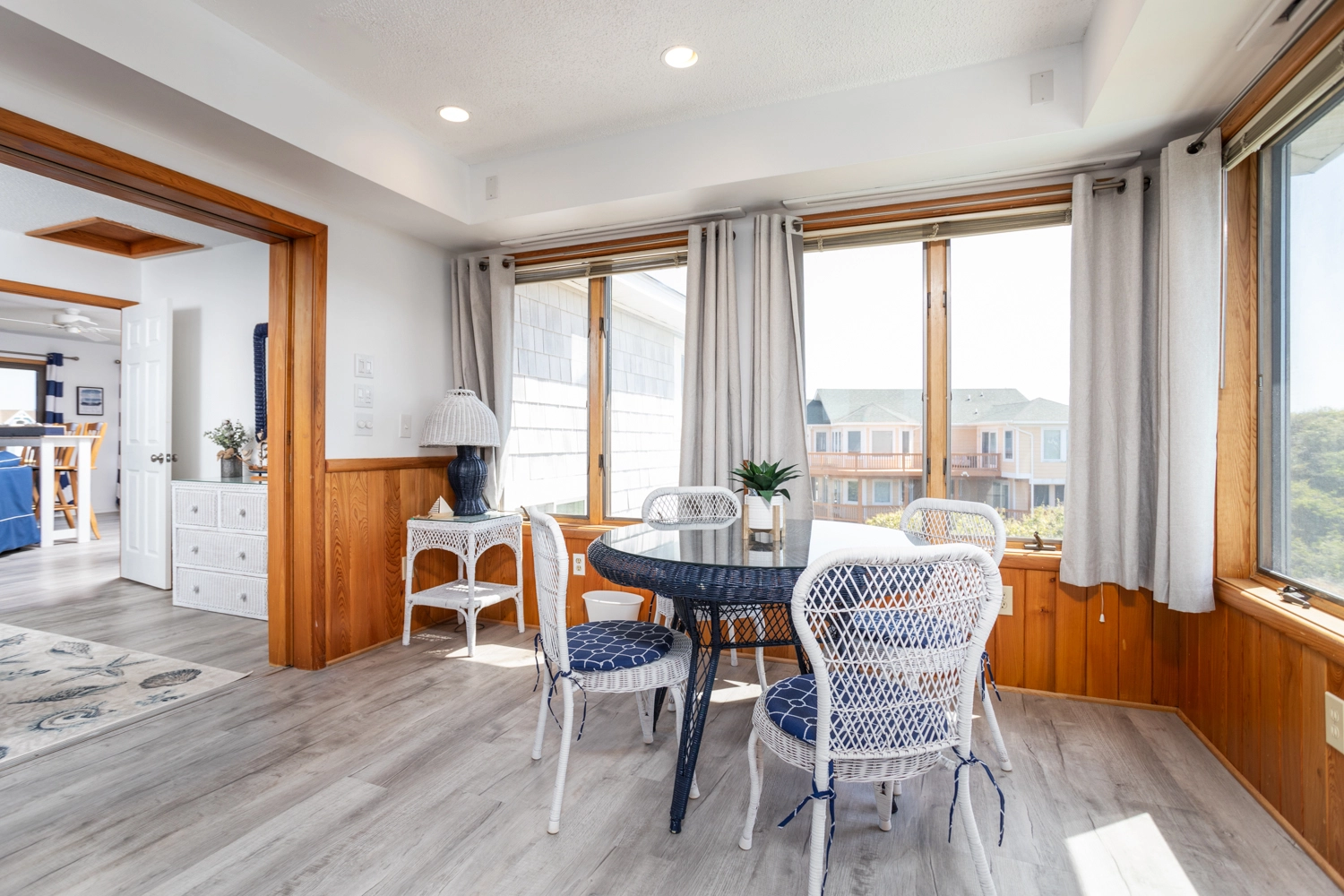 "Easy quick access to the beach! Loved sitting on the top deck watching the waves in the late afternoon. Pool and hot tub were well maintained and so nice to have. We found the sound access at the end of our trip and wish we would have spent the evenings there watching the sunset. It has a nice walkway to a pier with sitting area and provided a nice quiet spot to watch the sun go down."