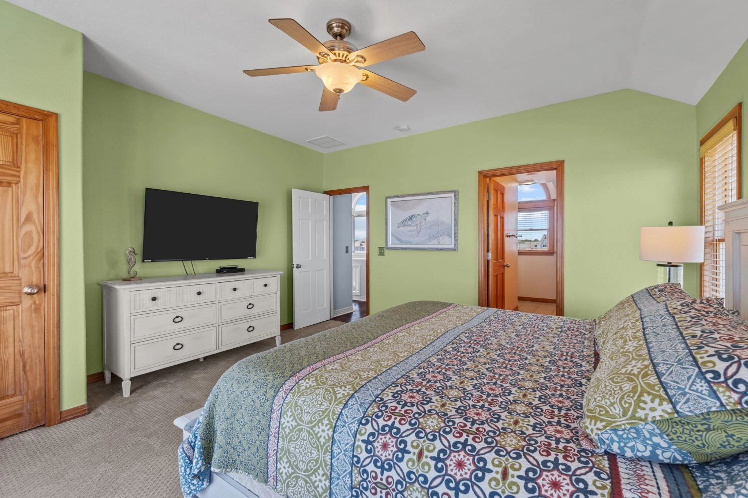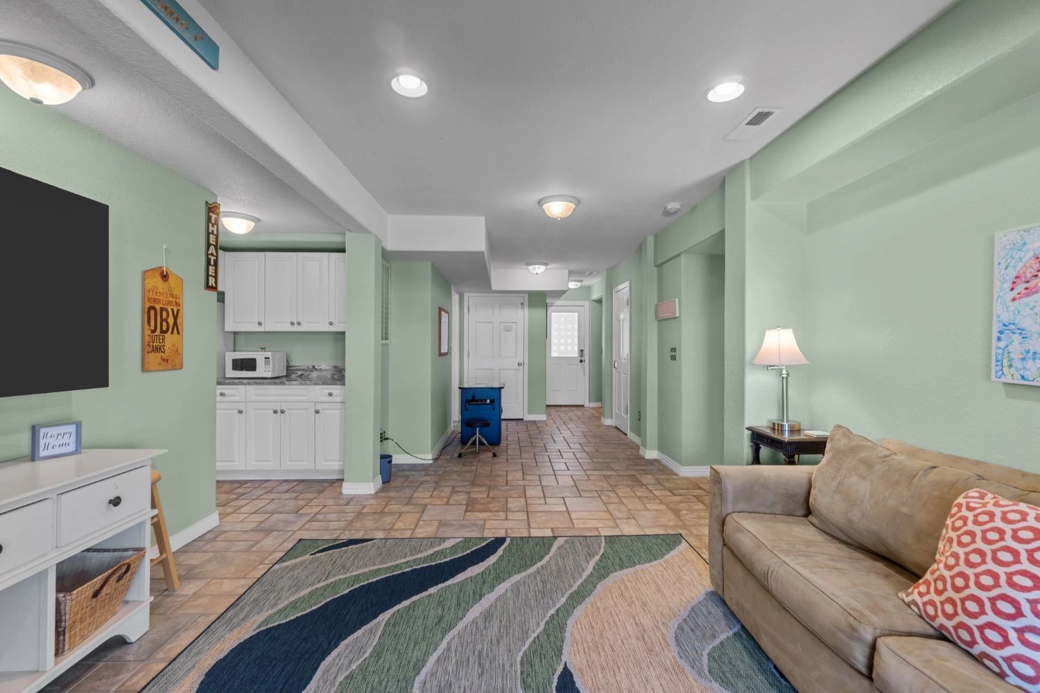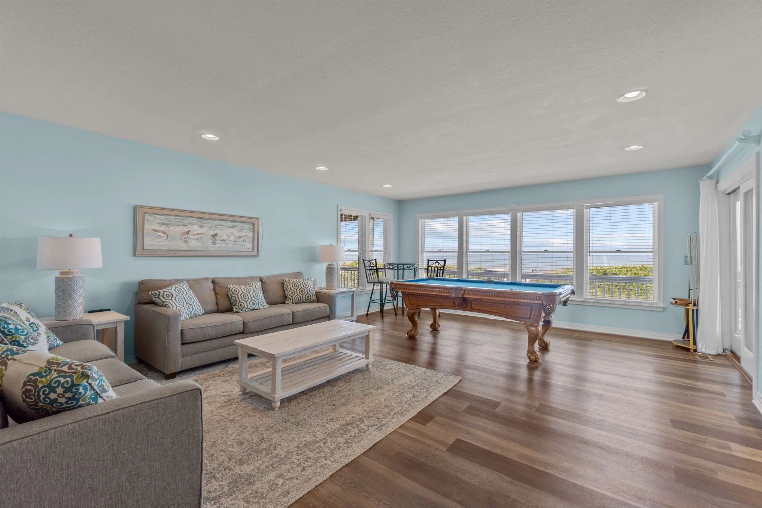 "It was gorgeous and there were PLENTY of dishes and utensils for all of us!!!!! Omg that’s always a problem, but not at Seas &Quackers!!! Plenty of living spaces for kids and adults, and all of them were big enough for everyone if we all ended up there. The pool table was a huge hit!!! The swimming pool and hot tub got a ton of use! Duck was an easy fun shady walk. The decor was so pretty too!!! Enough king beds for all the adults from grandparents to adult grand kids, which is an absolute miracle!!!"