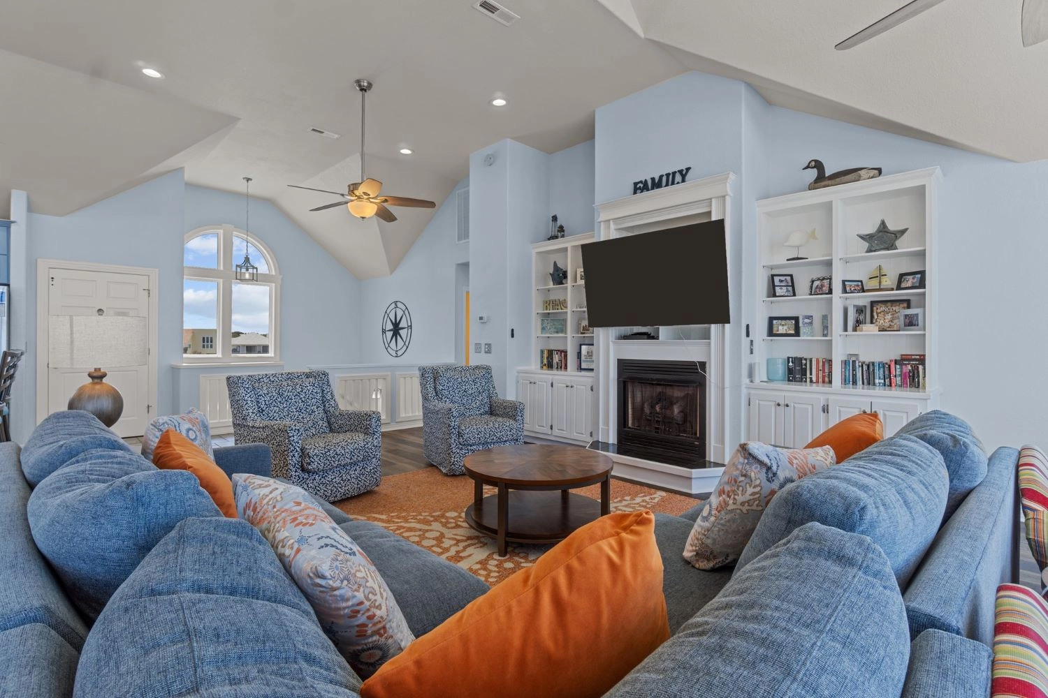 "Seas and Quackers was the perfect choice for our multi-generational family vacation. We took advantage of all the house's amenities, including multiple family rooms, 3 full size refrigerators, pool table, and theatre room. The home is very spacious, furniture was in good condition, kitchen was well stocked with cooking tools and updates have been made such as new televisions. The location right on the water cannot be beat. Having the community beach entrance directly next to the house made the beach a bit crowded, but it was manageable and we plan to return!"