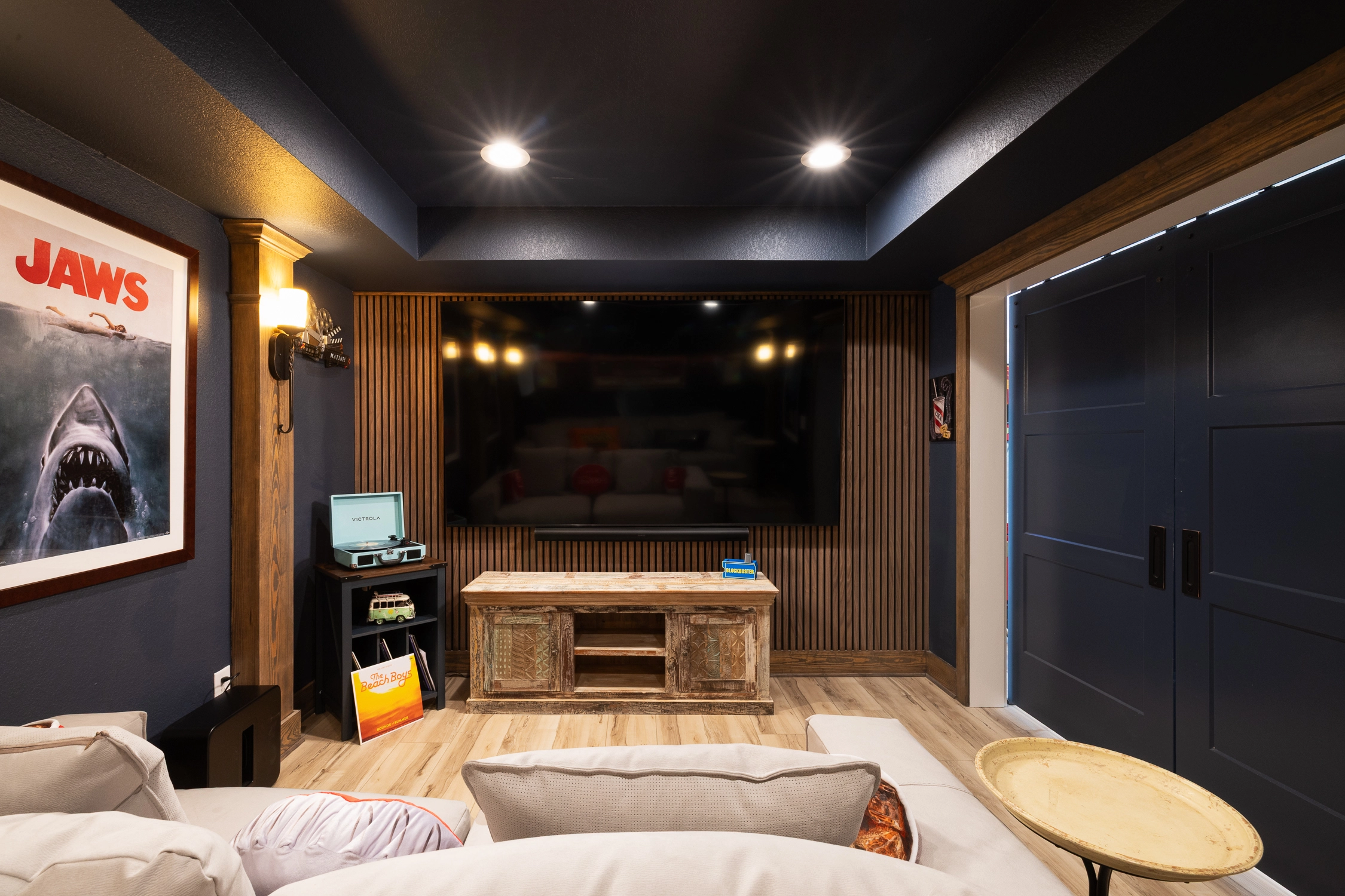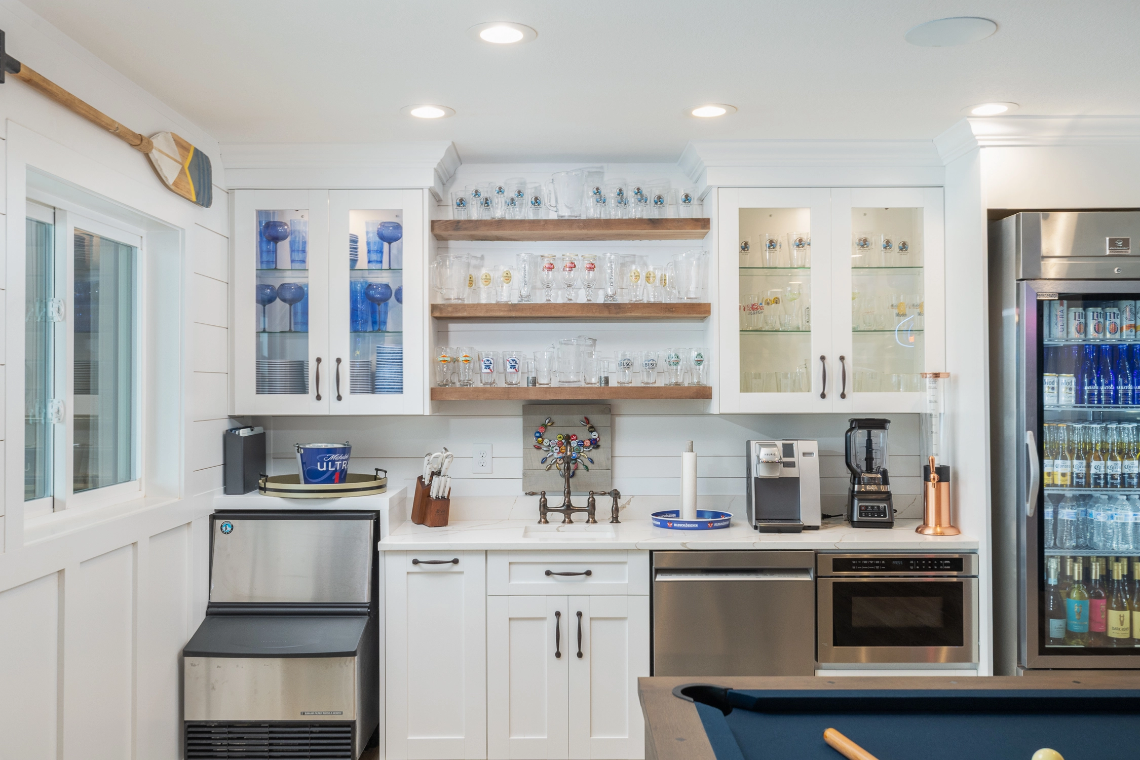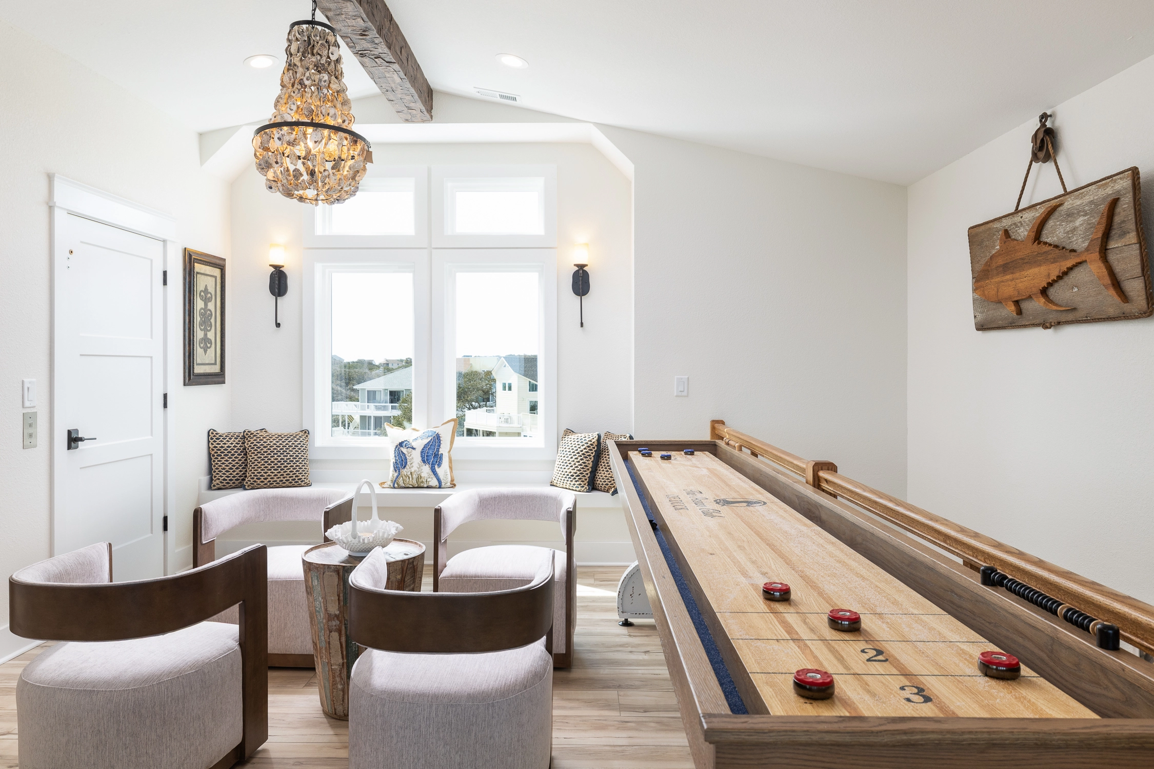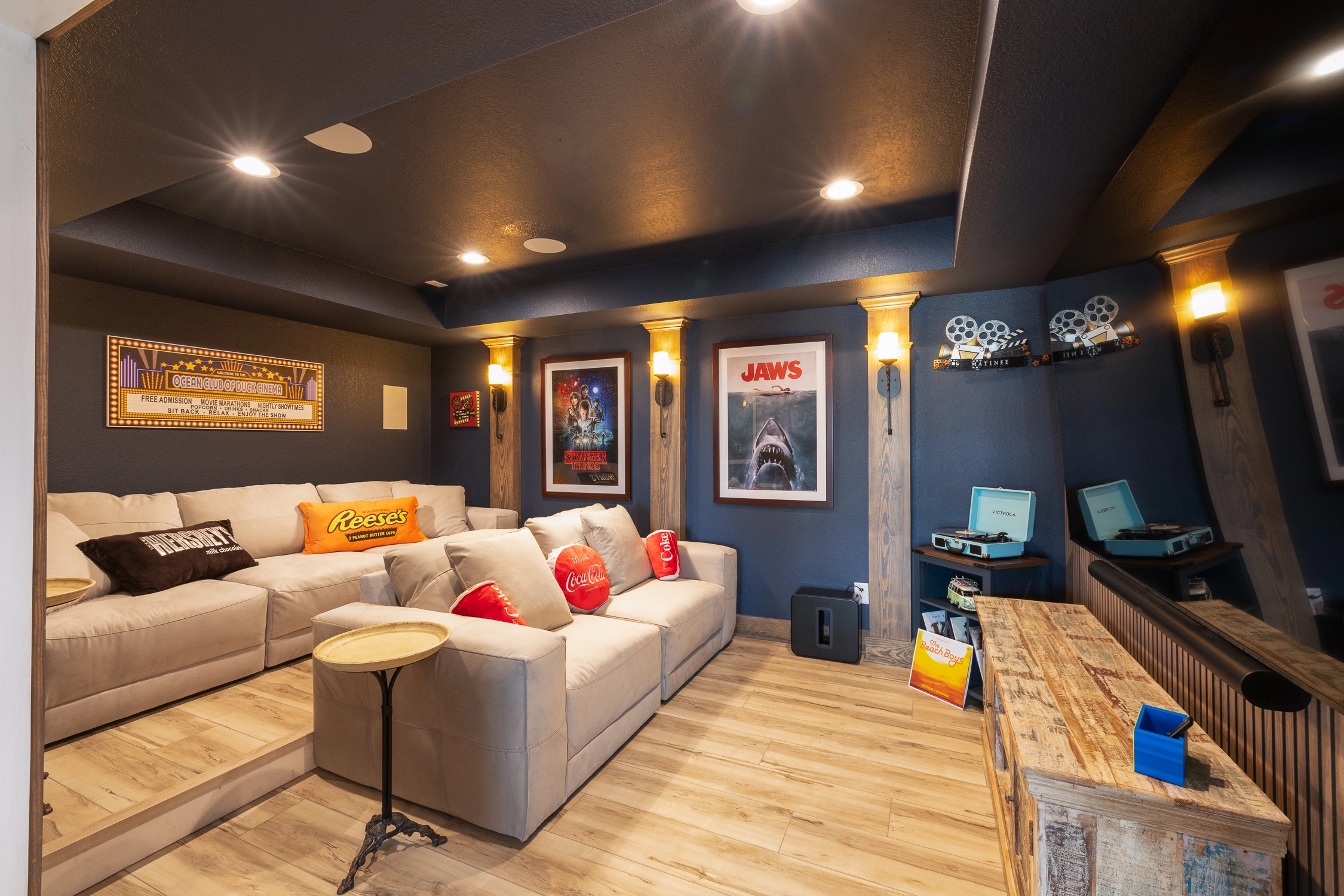 Theater room; rec room with pool table, boat bar with wet bar and refrigerator; laundry.