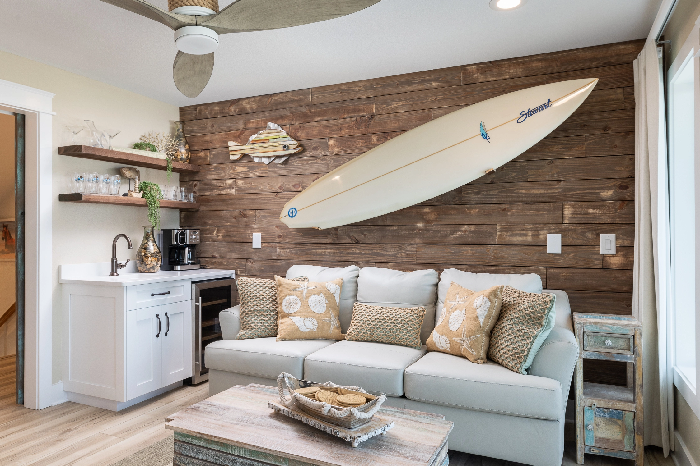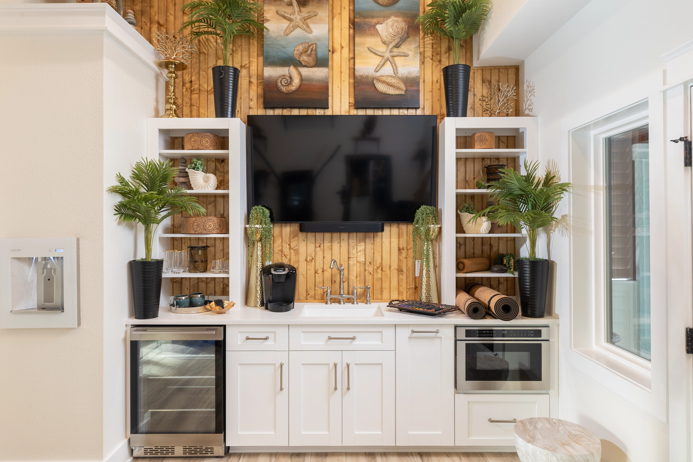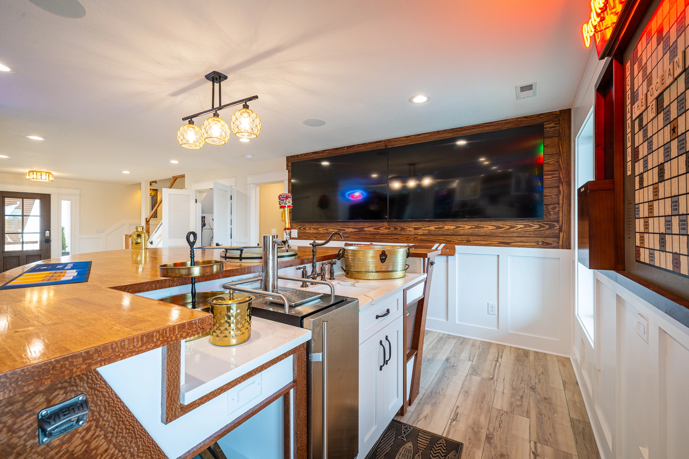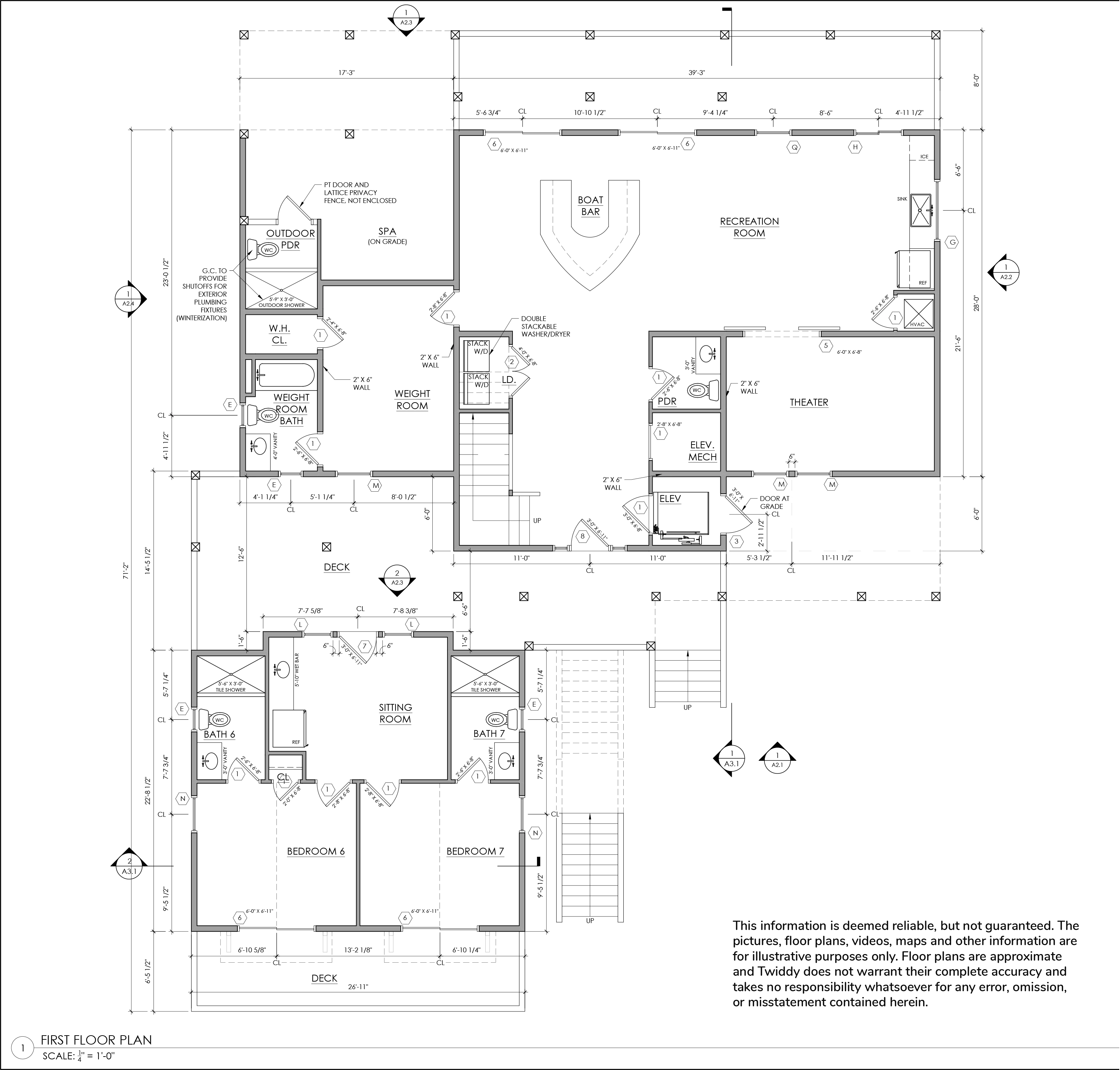 Theater room; rec room with pool table, boat bar with wet bar and refrigerator; laundry.