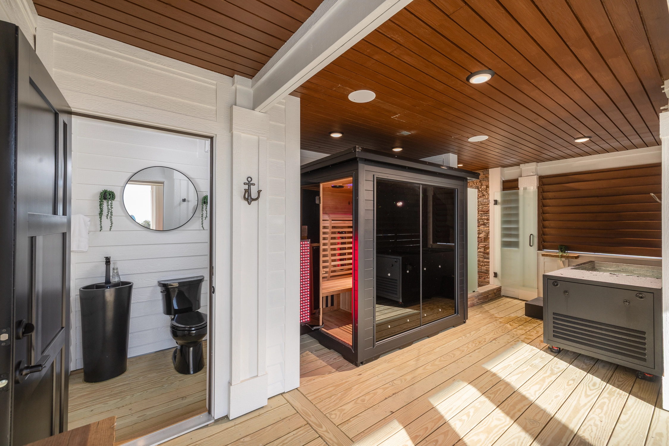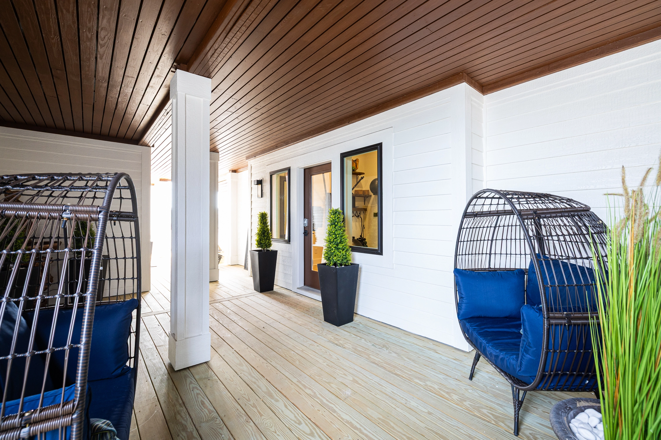King, Standing shower, Handicap Friendly features (Accessible features include wide doorways, a roll-under vanity, a handheld showerhead, and safety grab bars for both the shower and toilet), Deck access