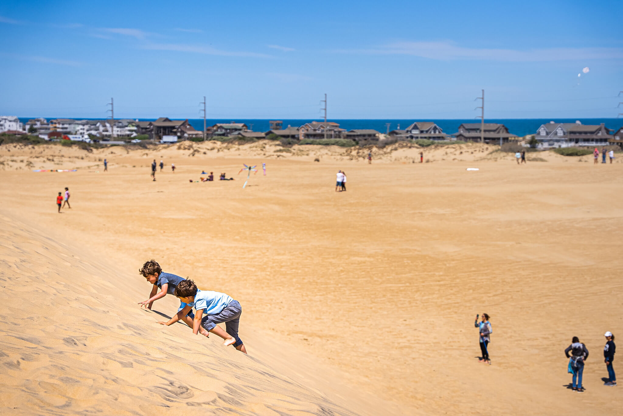 Climb Jockey’s Ridge without breaking a sweat. The sand is too hot to walk on during the dog days of summer, but the weather is perfect for walking up the big dunes in the Fall.