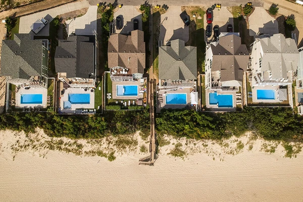 Oceanfront means there is no other property or lot between the home and the beach. Expect gorgeous ocean views, although keep in mind the sand dunes may obscure parts of it. There may or may not be a direct beach access depending on the home. For homes without a private walk way, there may be a community beach access close by.