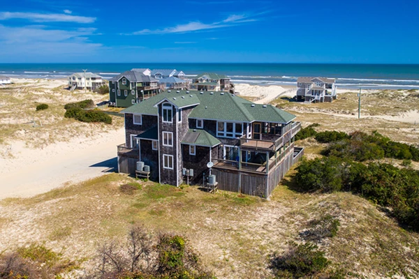 These homes are located off of the paved road, north of Corolla proper. A four-wheel drive vehicle is required. Visit our 4x4 Beach Driving page for more information.