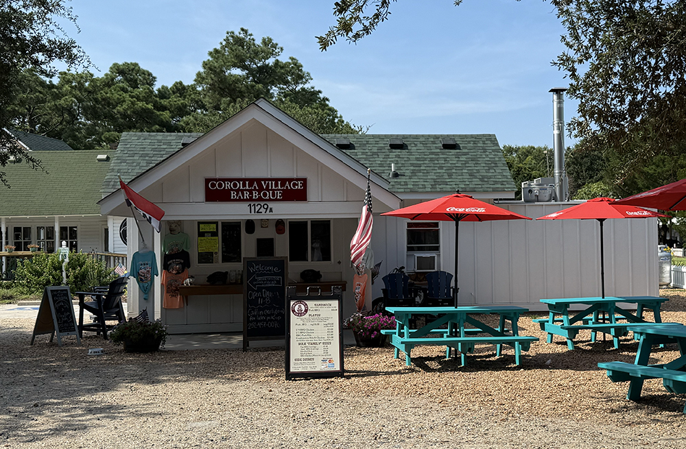 Situated beside the Parker house, this building was used as a garage and outbuilding. Restored by the Twiddys in 2000, it is now Corolla Village BBQ, specializing in North Carolina-style BBQ.