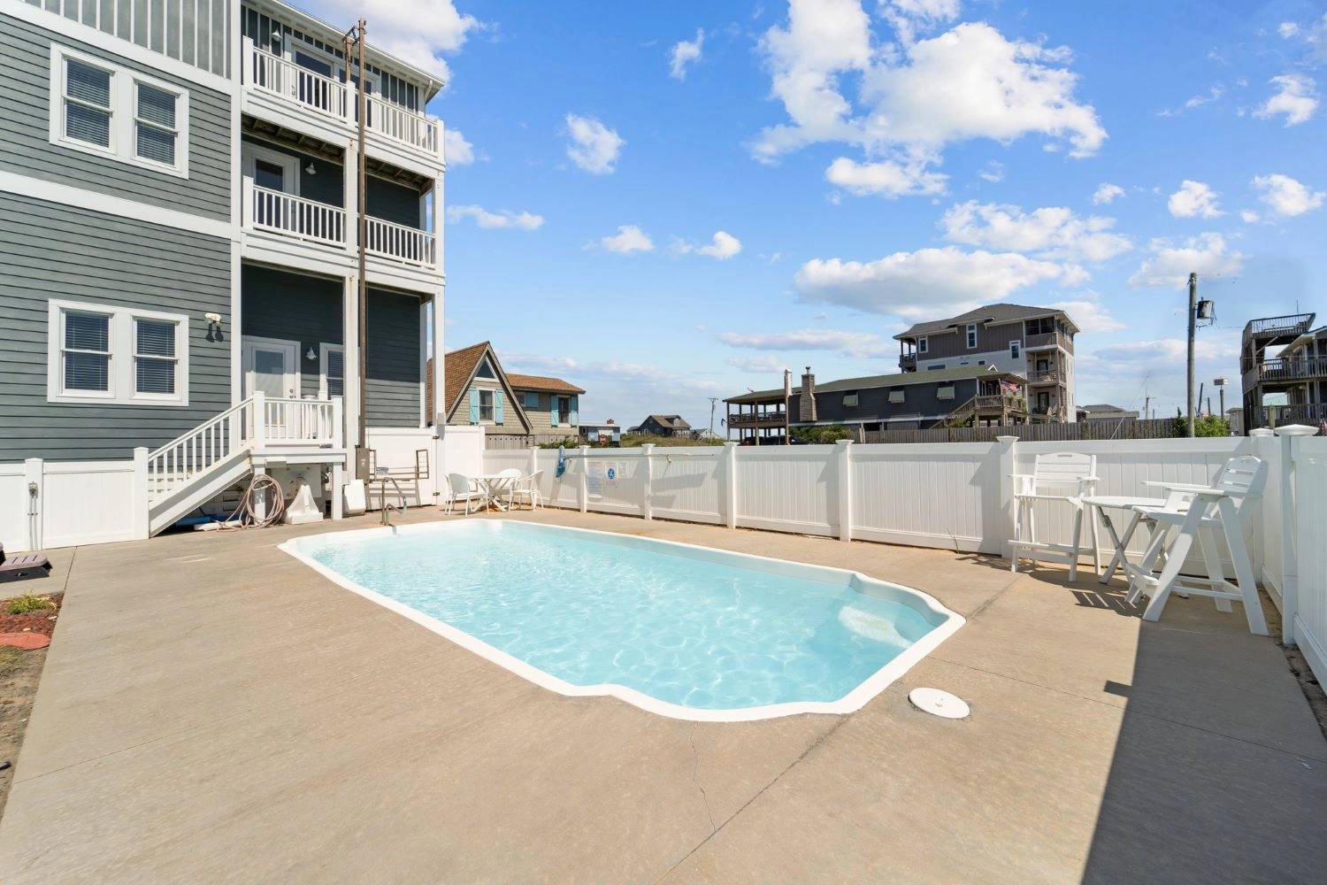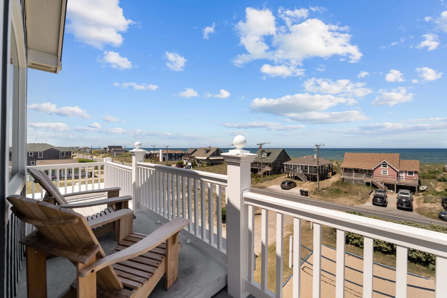 "Great location! The view of the ocean from the top floor was lovely! The beach was very close, literally across the street. It was awesome being able to go back and forth from the beach to the pool every day. It was also close to supermarkets, restaurants and tourist attractions. We also enjoyed all the amenities that the house had to offer. We played with the games that were in the cabinet, used the pool, hot tub, foosball table and air hockey table. There was an awesome ice machine and wine fridge in the kitchen. Our only complaint is that there weren’t chairs on all of the balconies. We did have an issue with the dryer and the response from Twiddy was super quick! They repaired the dryer right away. Our 2 families (total of 9 people) were extremely comfortable in this beautiful home and would highly recommend it to any similar size group!"