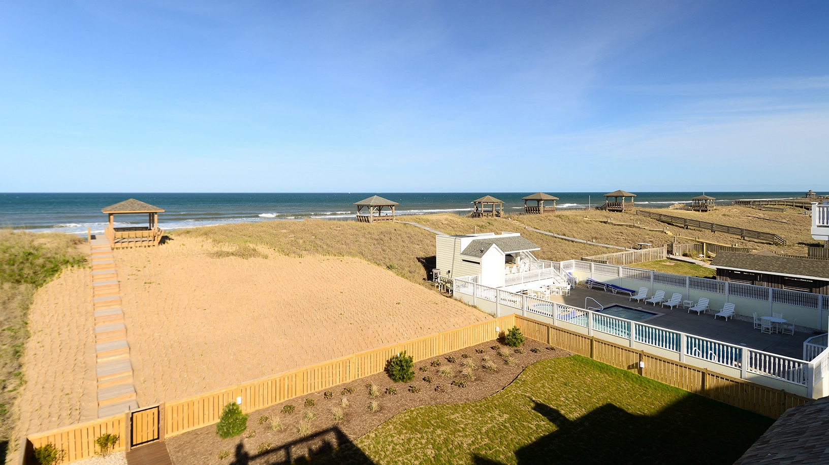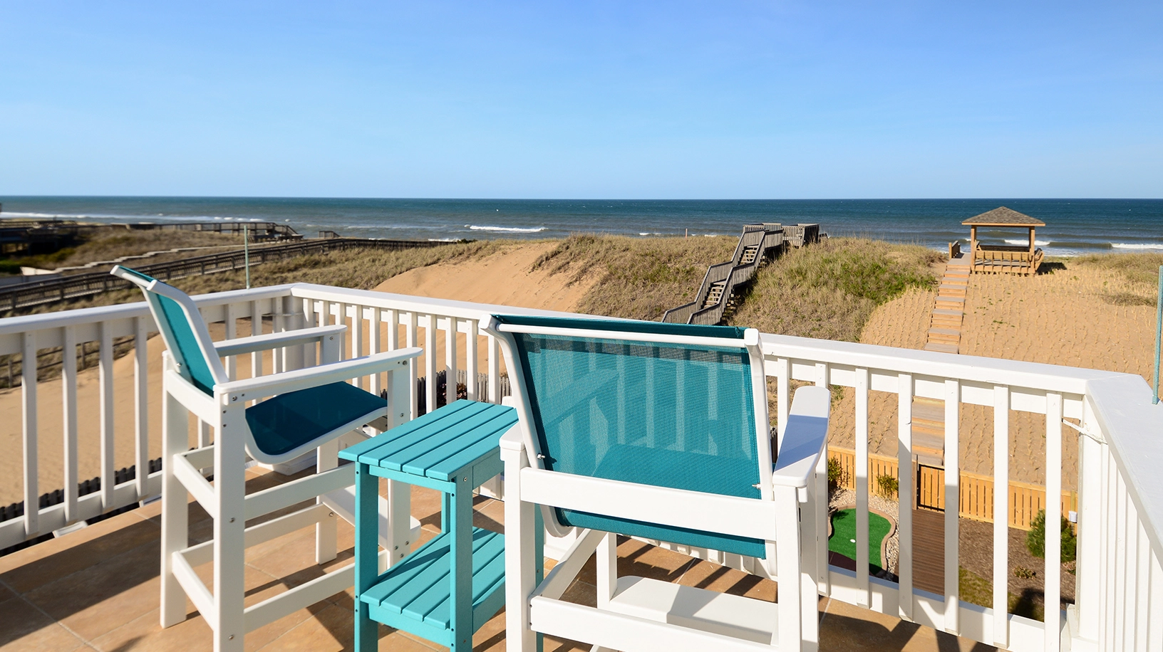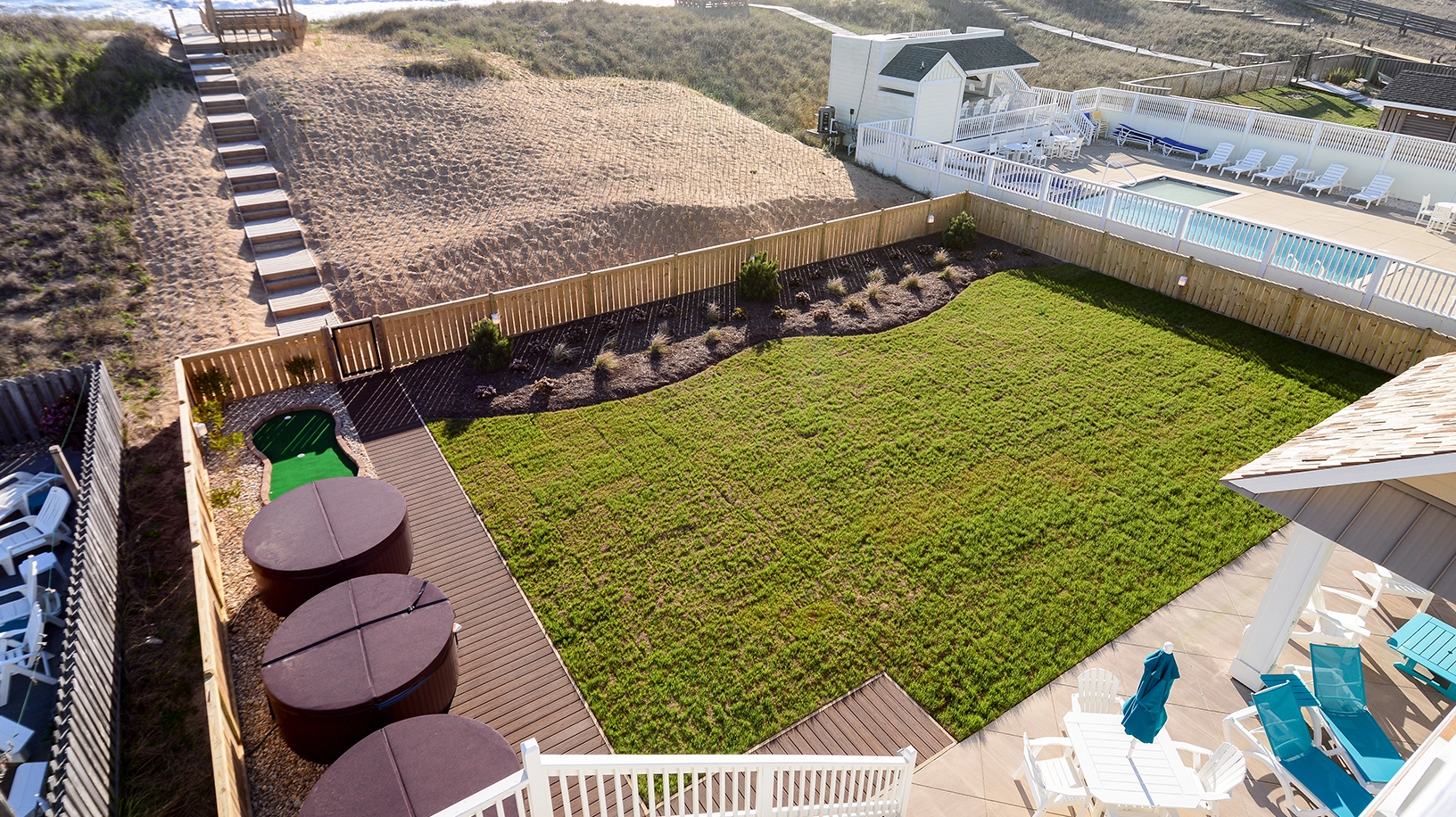 "Beautiful home, beautiful location on the beach! A bit disappointed with the condition of the lawn & overgrown greens on the small golf putting area which we couldn’t use. Twiddy was helpful trying to resolve the poor internet situation & any/ Fly/ water bug situation. Could use another oven and more gas burners!"