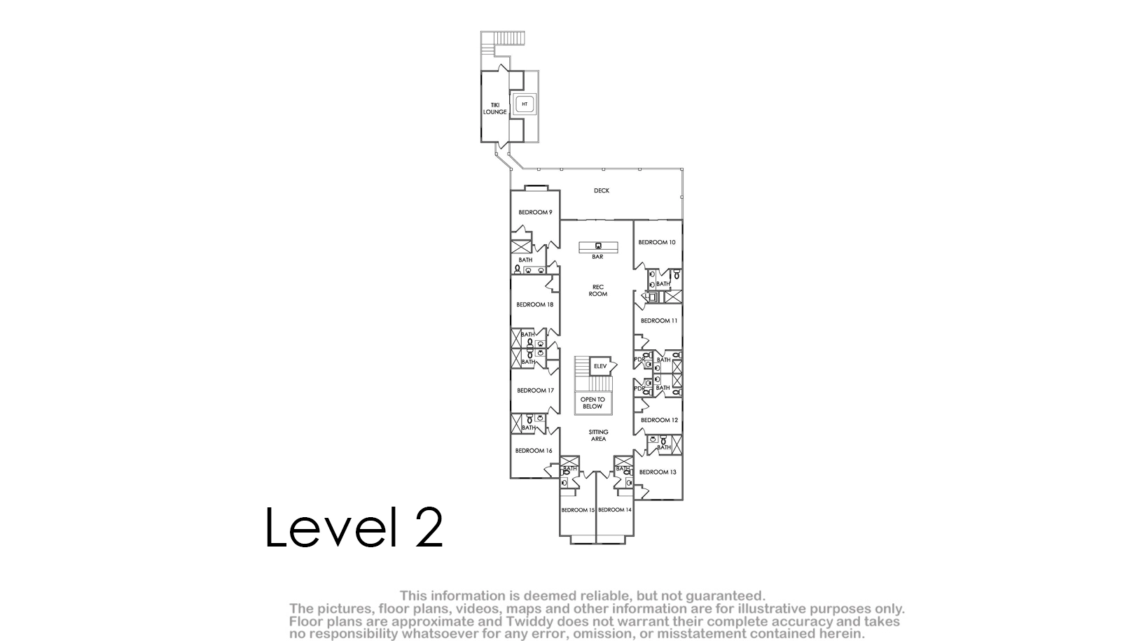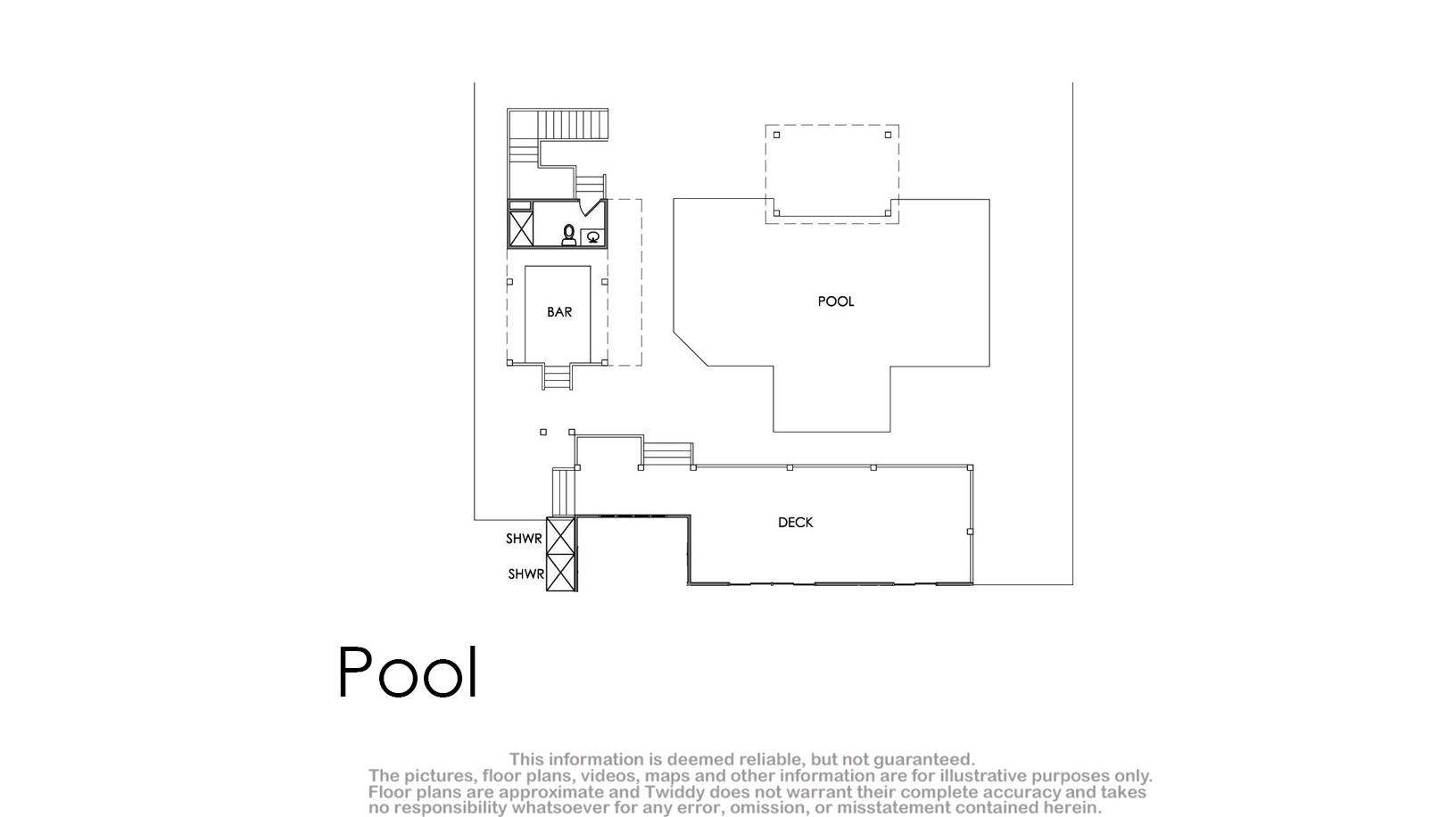 High-tech audio/video capabilities; three-story poolside cabana with tiki bar on level one, a lounging area perfect for DJs and bands on level two, and a rooftop deck on level three; 3 hot tubs; outside full bath.