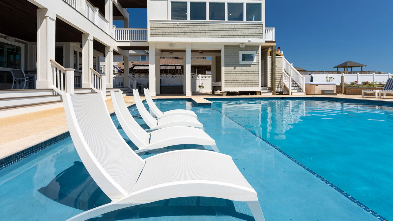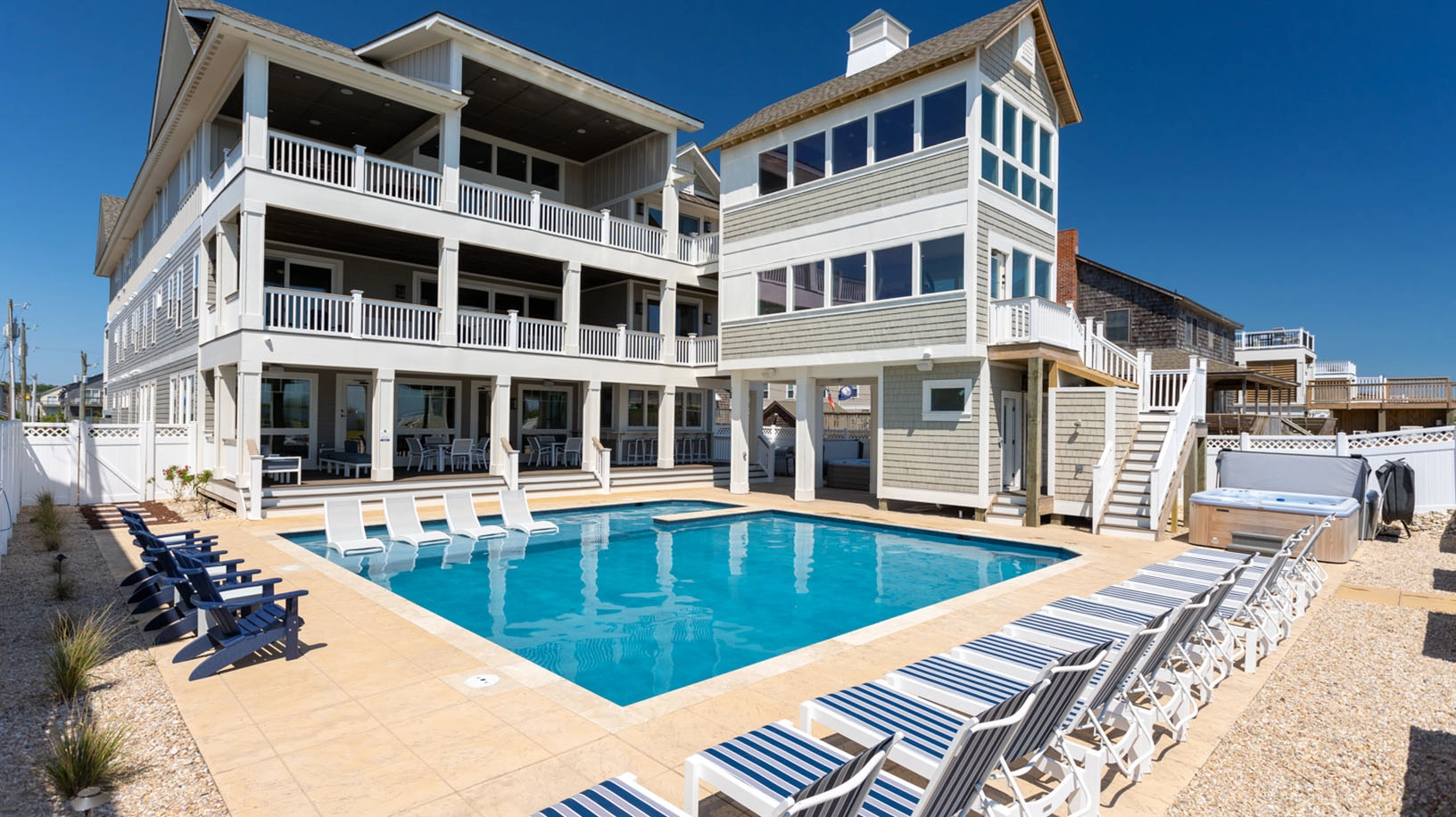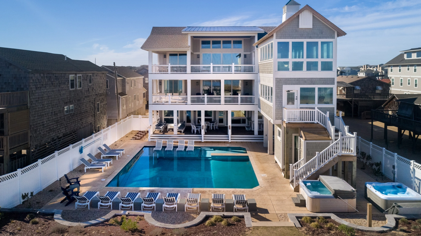 "The best house we’ve ever had for our family reunion! The ocean, pool, game room and tables, spacious well equipped kitchens, all bedrooms with private bathrooms, fully equipped exercise room, grassy area, and spacious gathering rooms were ideal for our group, delighting all ages from 2-83 years old."