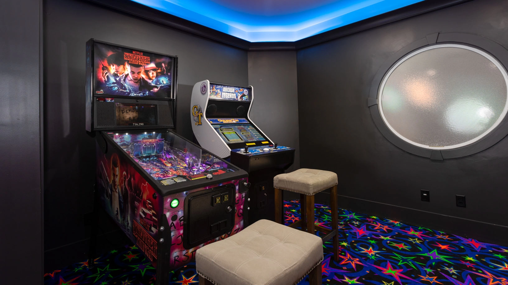 "The home was great. Decor, layout, kitchen/ice machine every floor. Indoor activities if weather wasn’t great. Pool table, arcade, movie theater, heated pool."