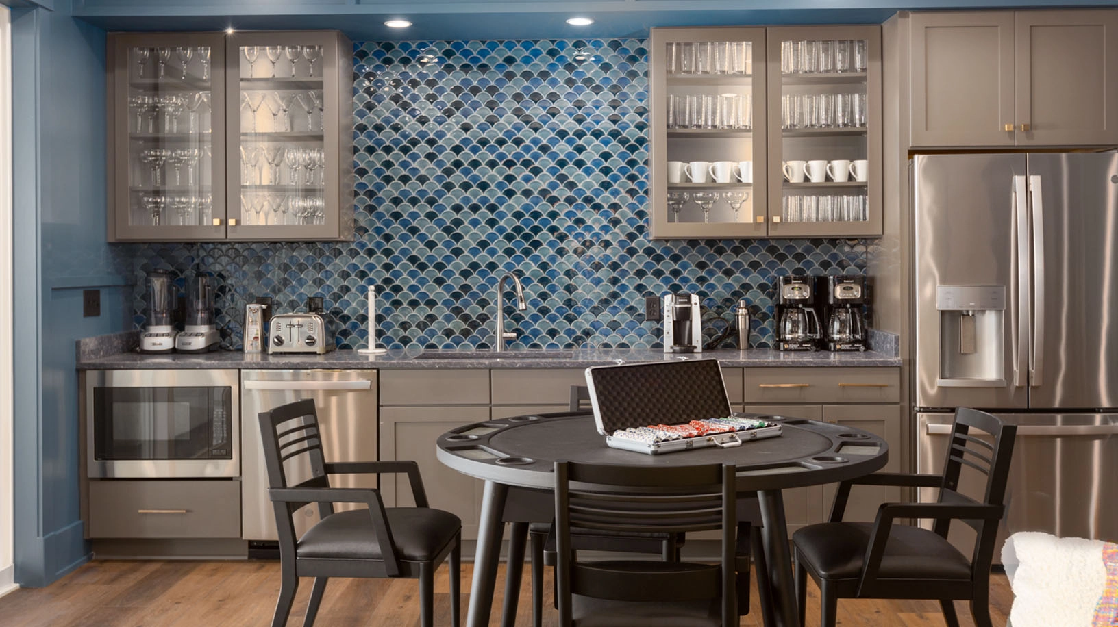 "The home was wonderful. We had more than enough space for our multigenerational family of 46 to spread out. We loved the pool & yard area and kitchen on ground floor. The butler’s kitchen was a big help and we also loved the washer & dryer on all floors."