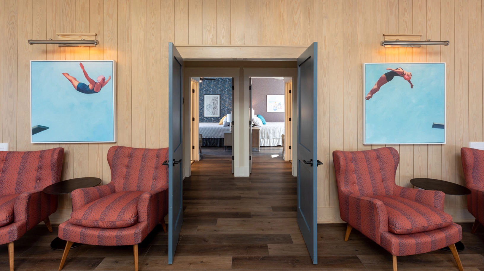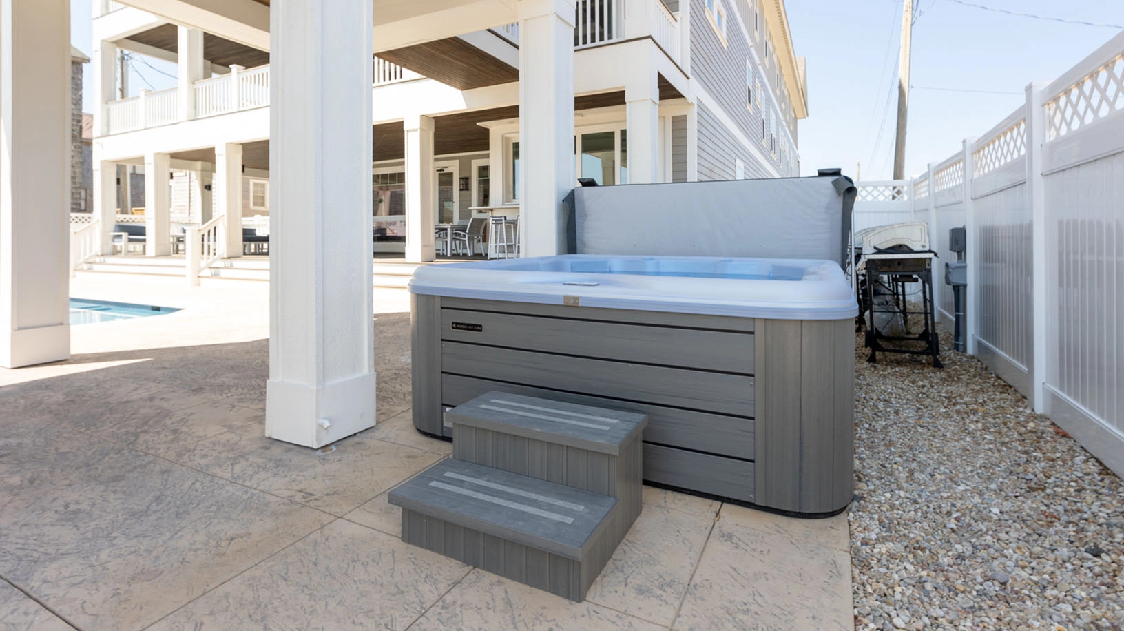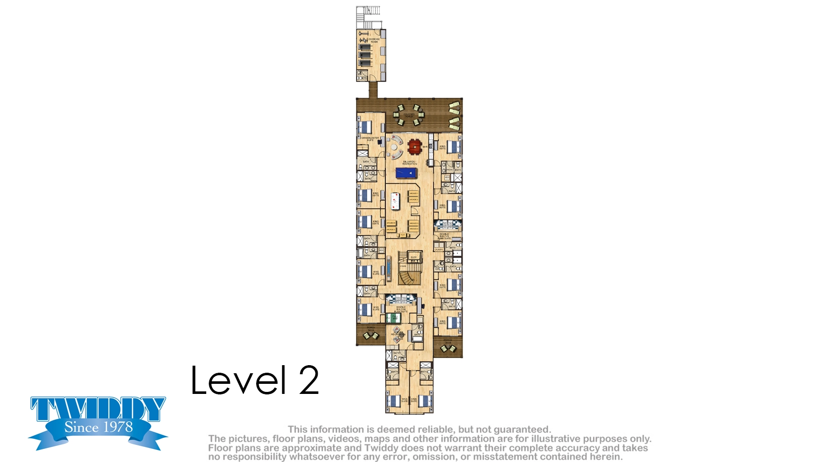 Elevator, private pool with tiki lounge, three hot tubs, event lawn, and two half cabana baths.