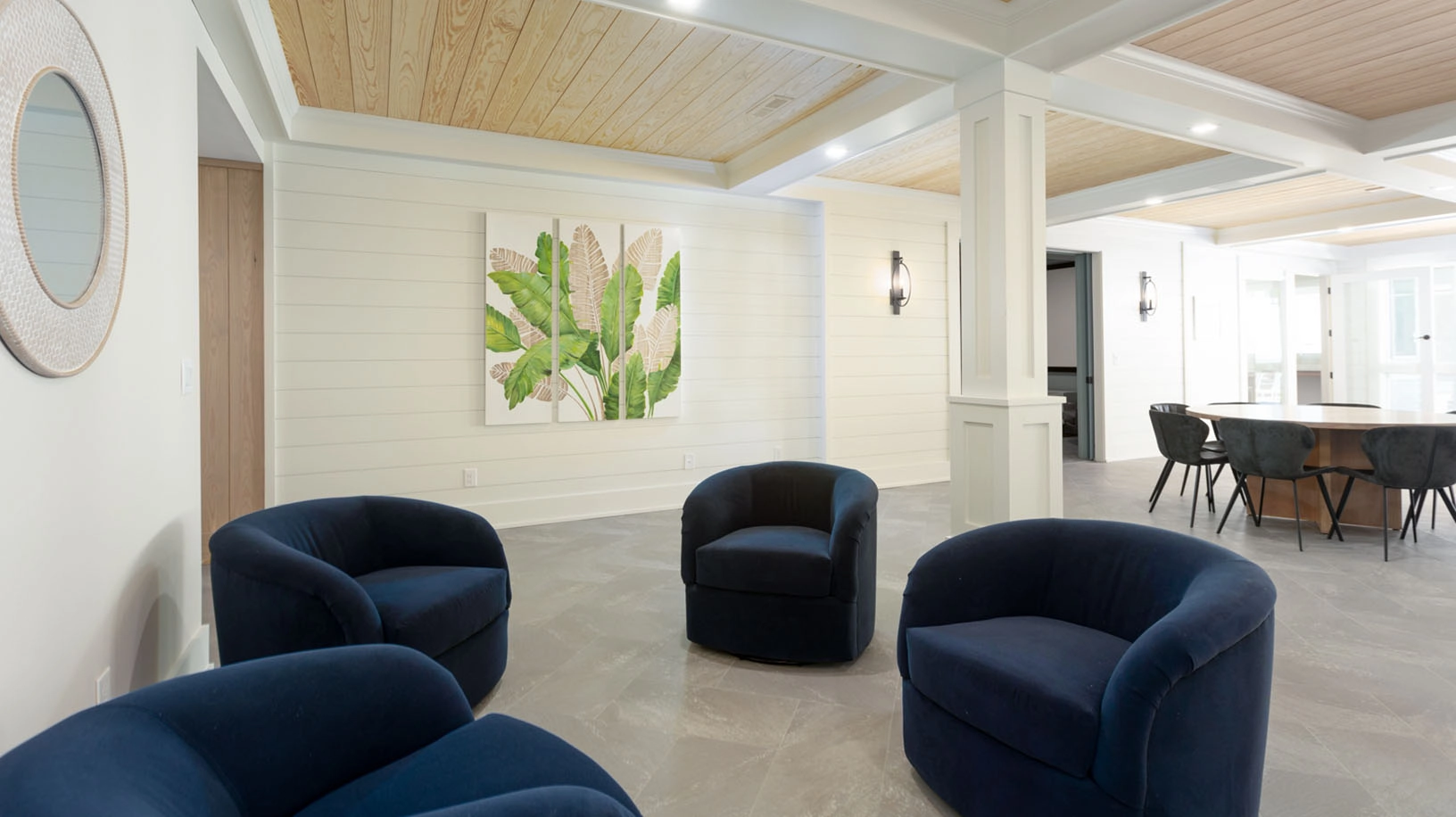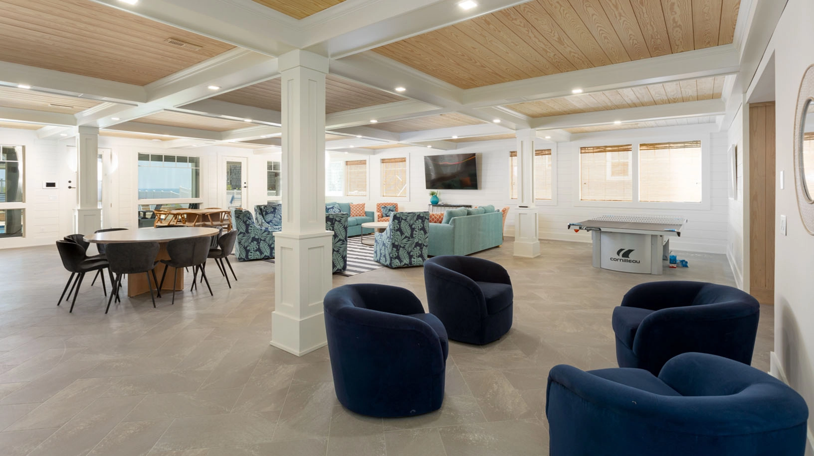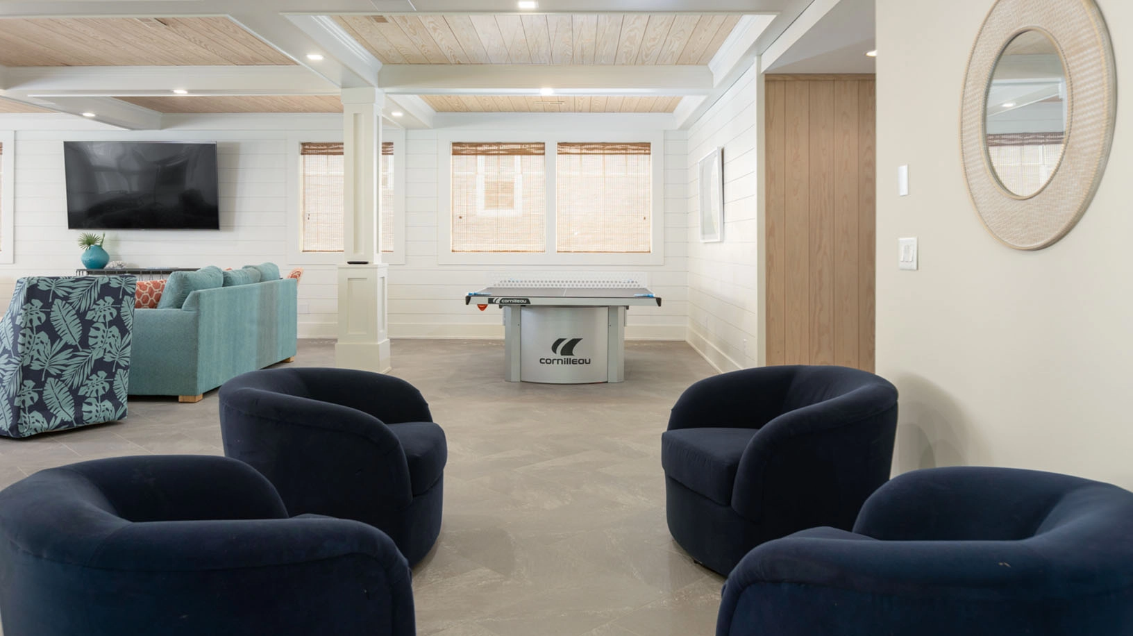 Theater room; dining area; sitting area; laundry; cabana bar.