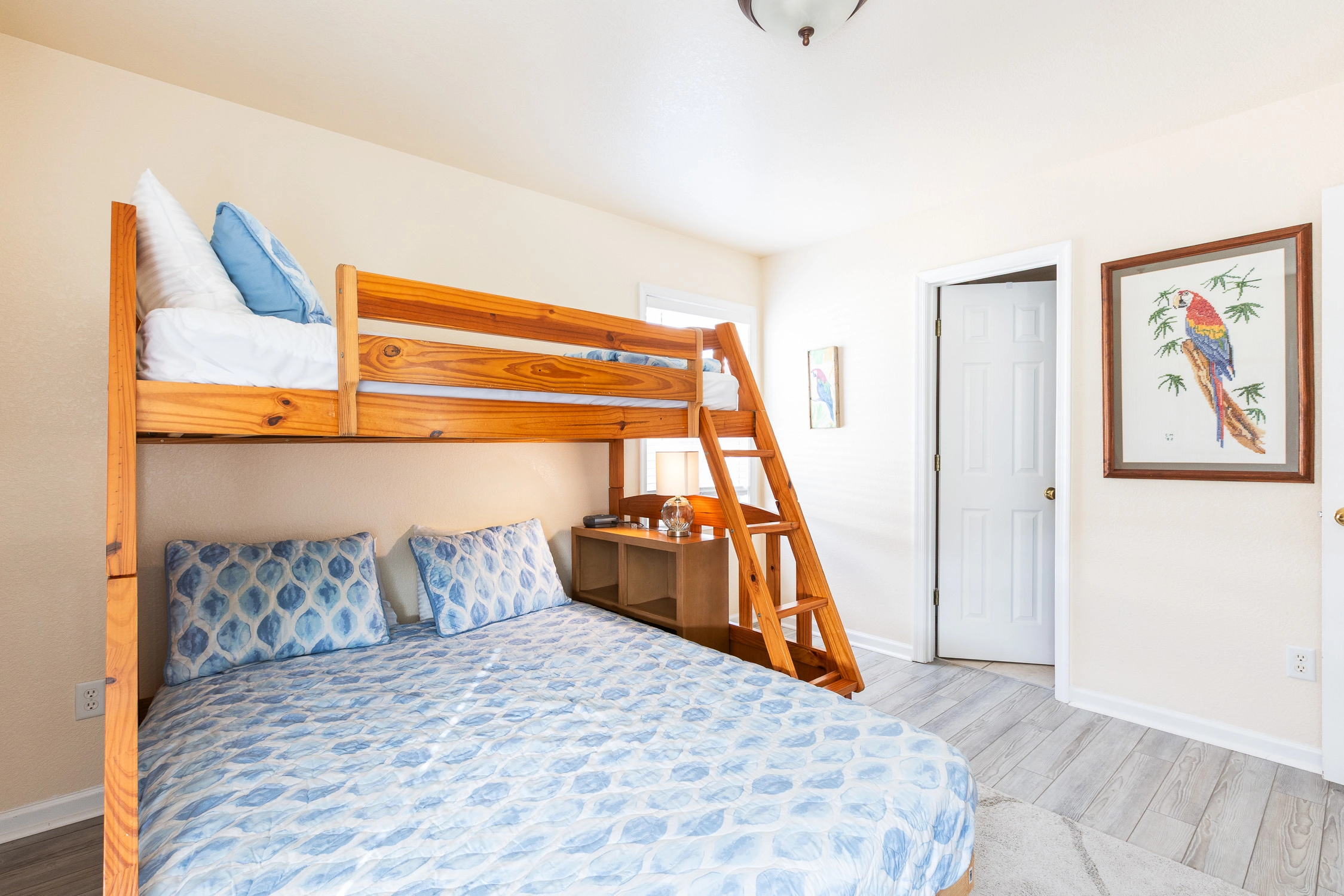 Queen with elevated Twin, Shared bath with Room 2, Standing shower