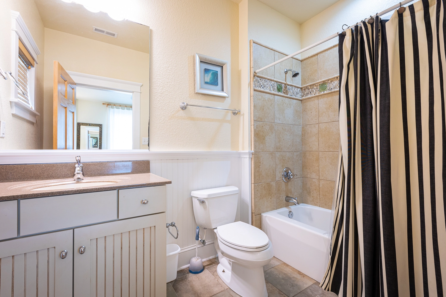 "Great roomy house for the whole family. Nice beach access. Be sure to bring your own toiletries and blow dryer."